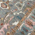 This contemporary Sultanabad carpet uses natural dyes and traditional designs from the famous antique carpets woven in Sultanabad with a modern feel. The purple and grey hues in the background colour combine so well with the dusky pinks and pale blue border making a wonderful decorative carpet. Hand-woven by the best weavers with amazing dyes, these carpets work in both traditional and contemporary room settings.