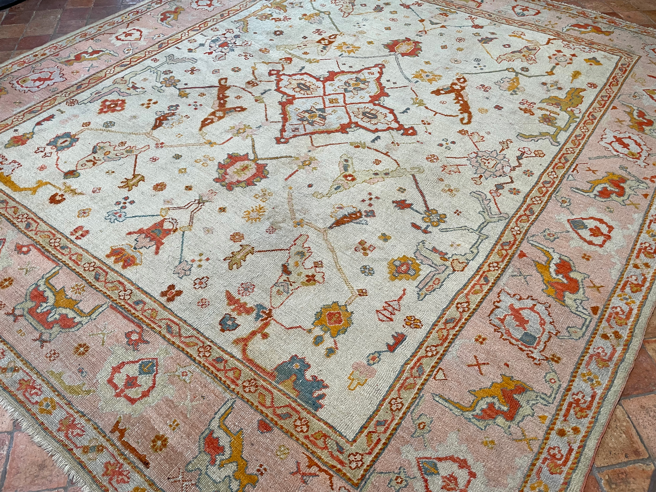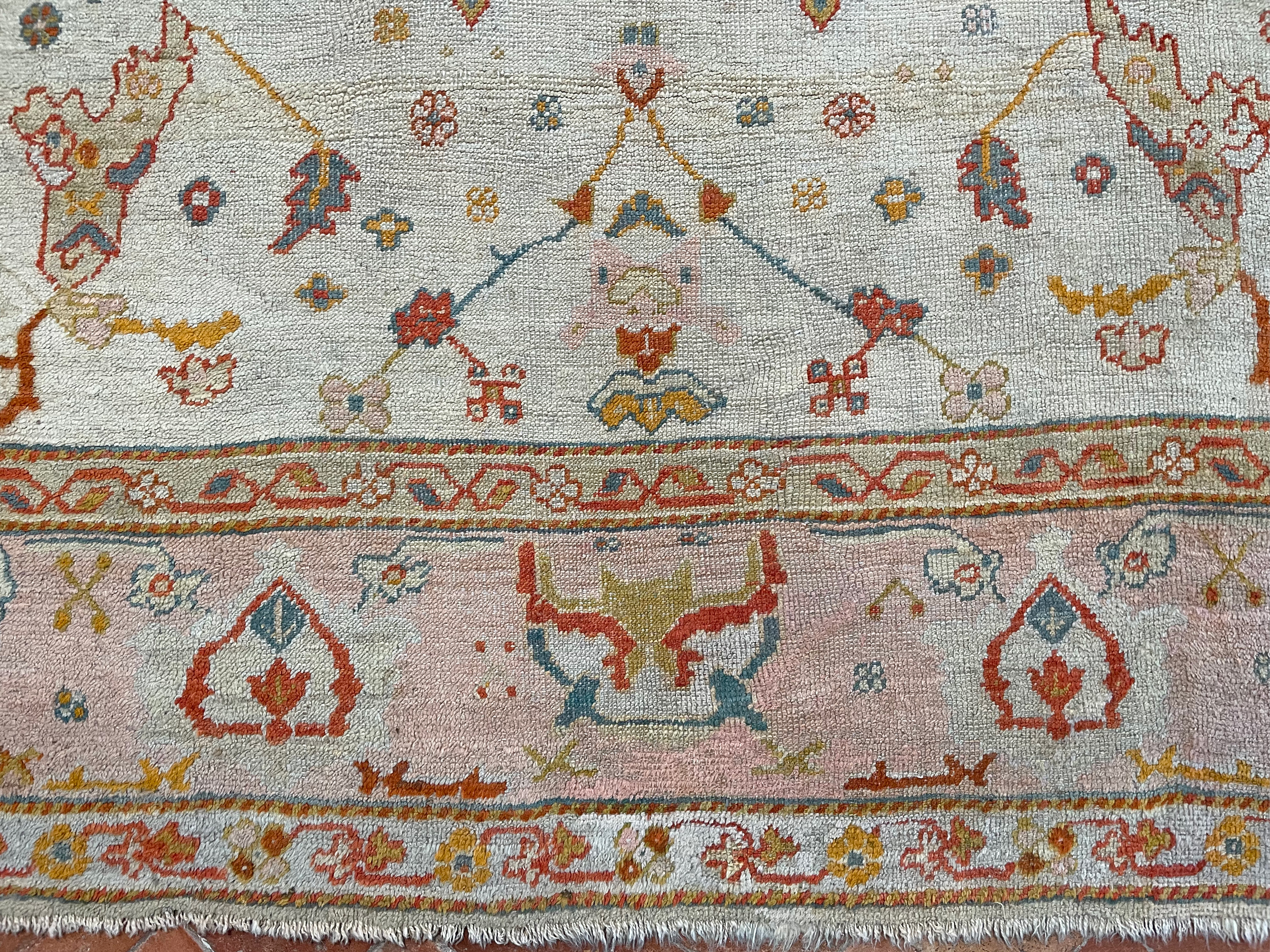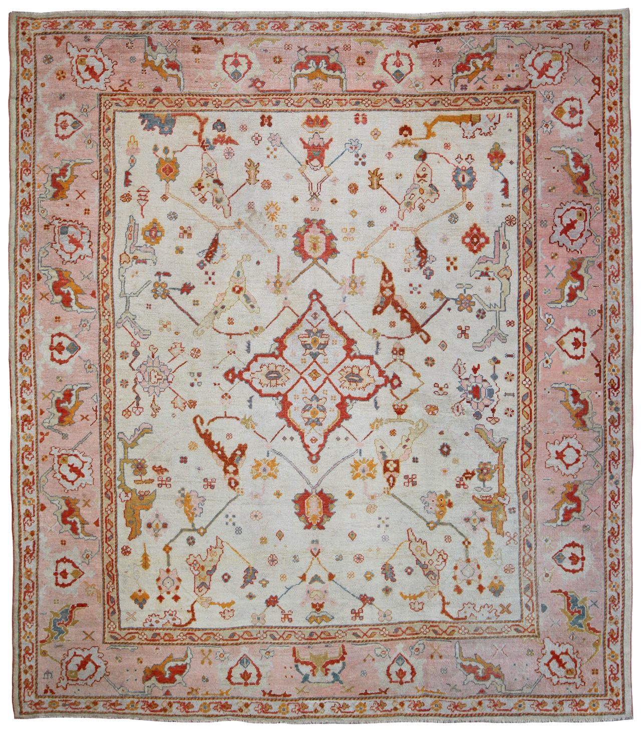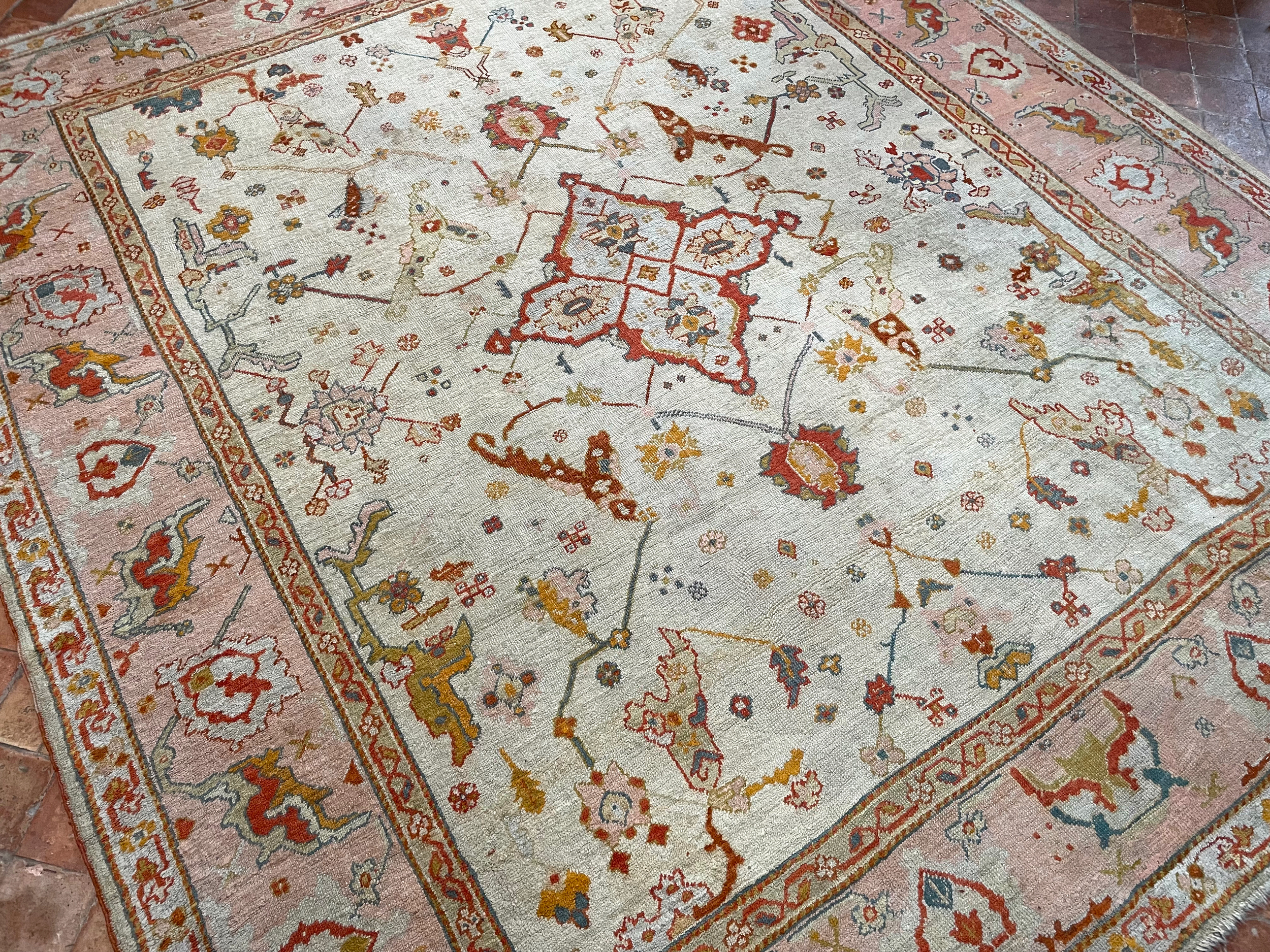 Ushak rugs and carpets were woven in the Anatolian highlands south of Istanbul where they used extremely soft wool and using the larger turkish knot made them weave more open designs than Persian carpets. They are increasingly desirable today due to their sometimes softer palette than persian carpets, thus making them easy to place in a drawing room or under a dining table.