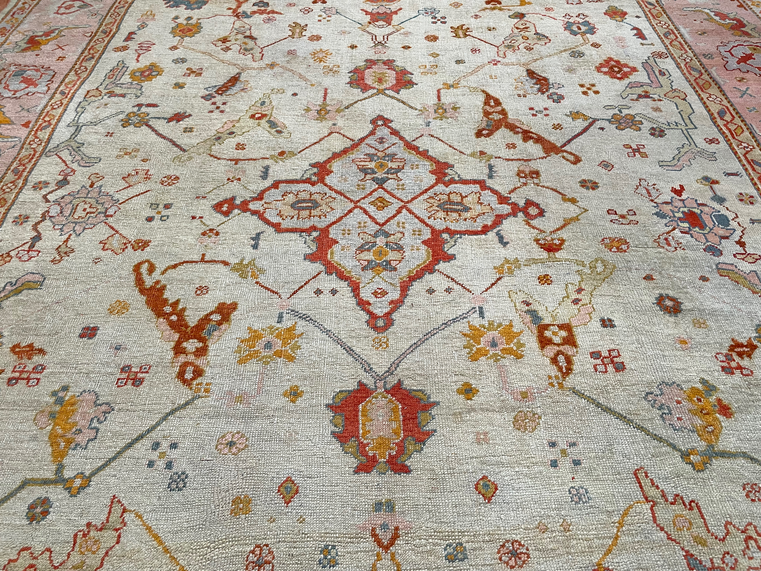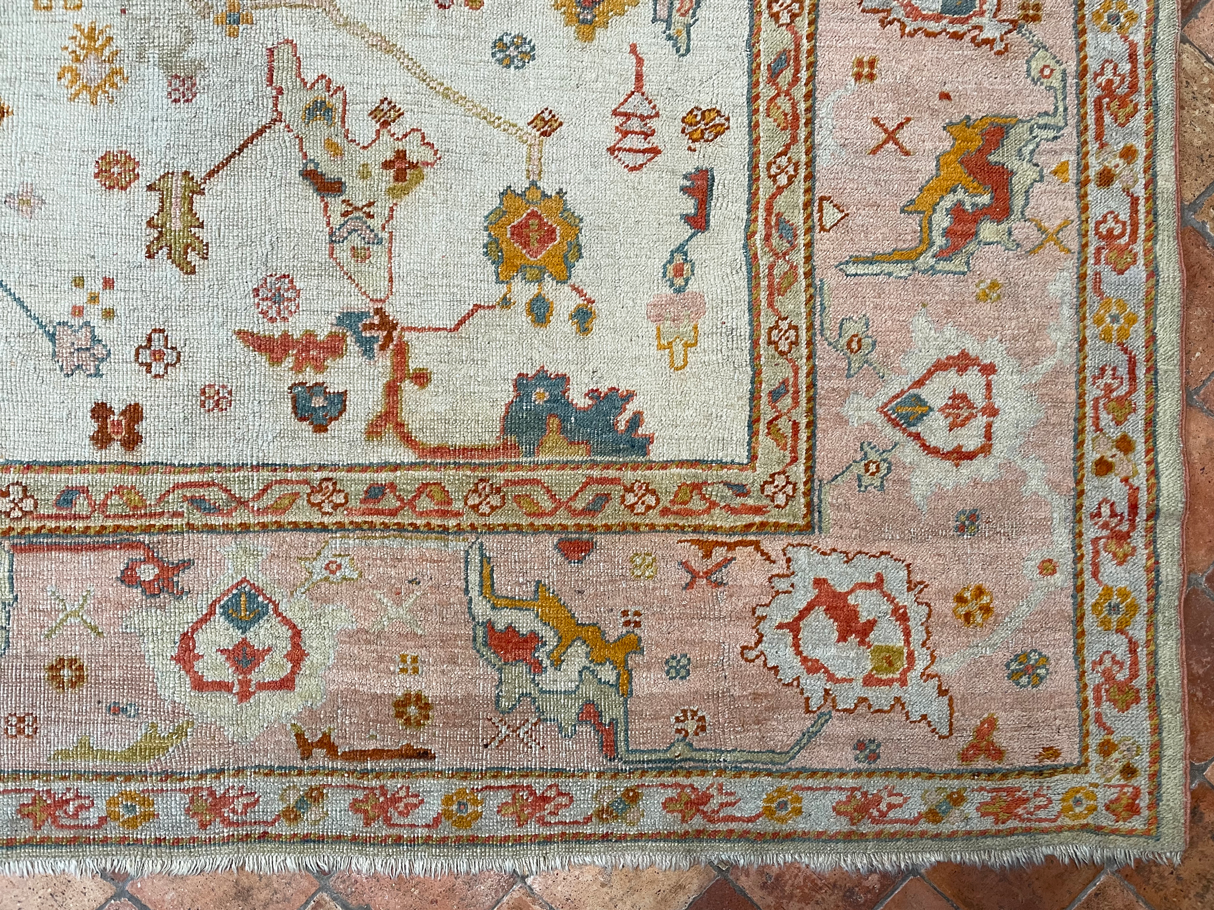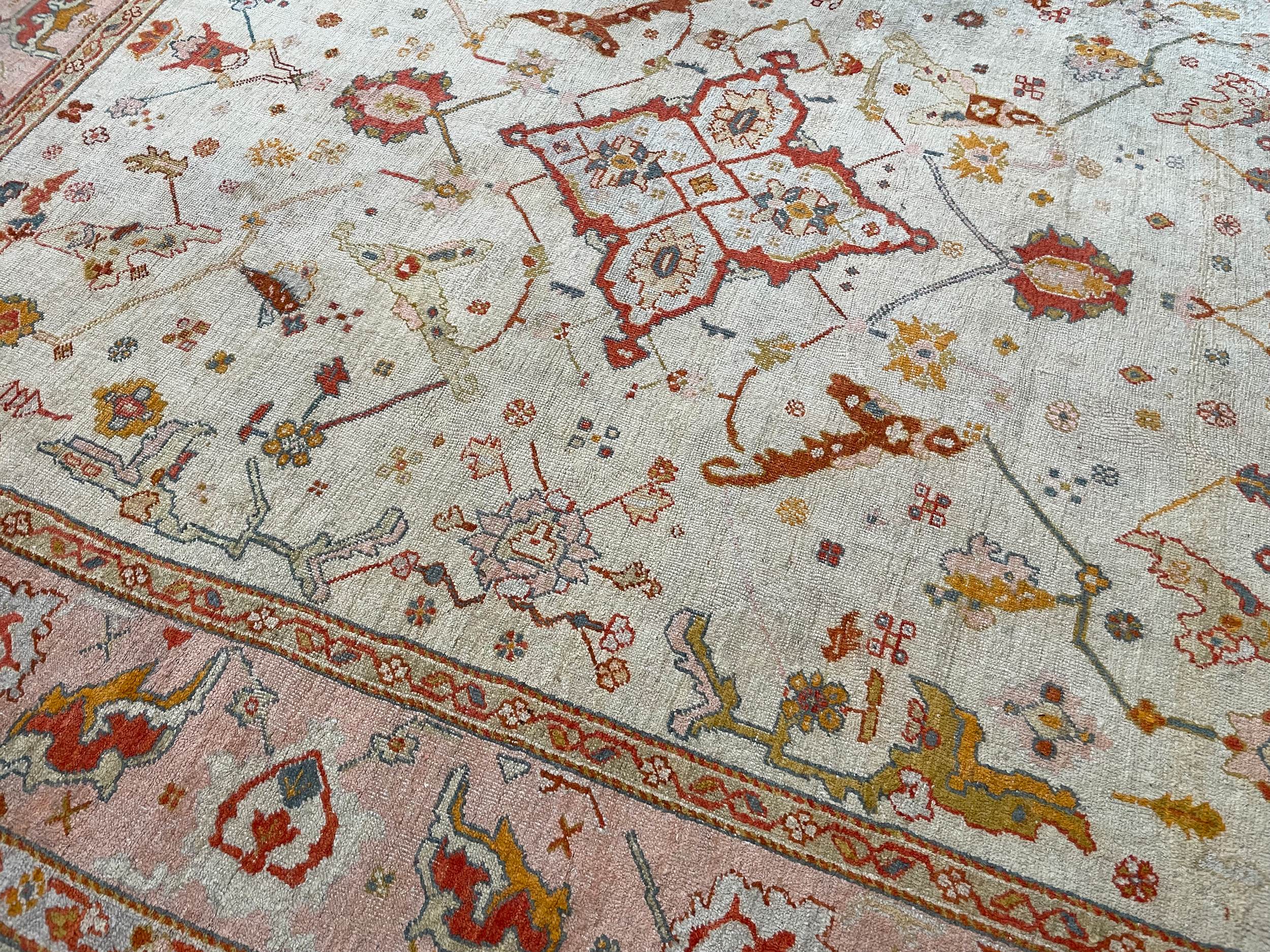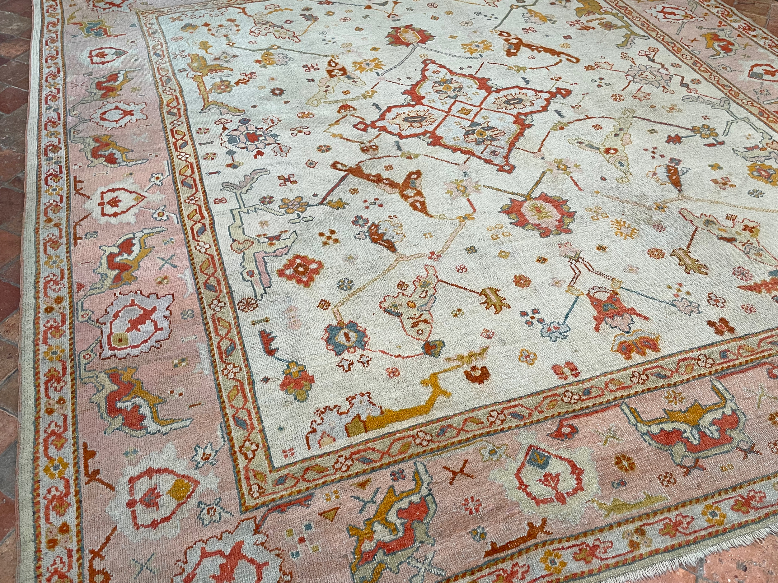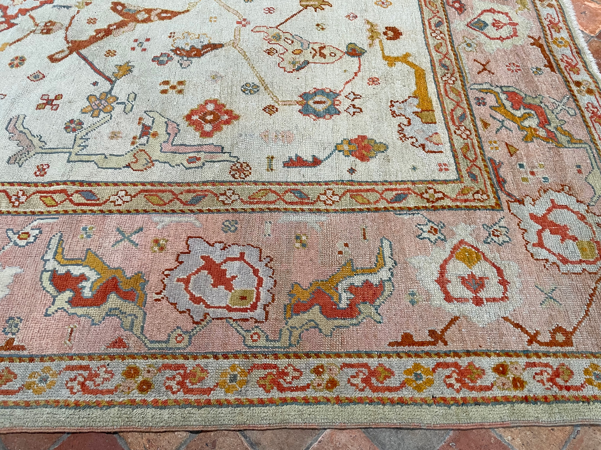 Ushak rugs and carpets were woven in the Anatolian highlands south of Istanbul where they used extremely soft wool and using the larger turkish knot made them weave more open designs than Persian carpets. They are increasingly desirable today due to their sometimes softer palette than persian carpets, thus making them easy to place in a drawing room or under a dining table.