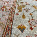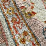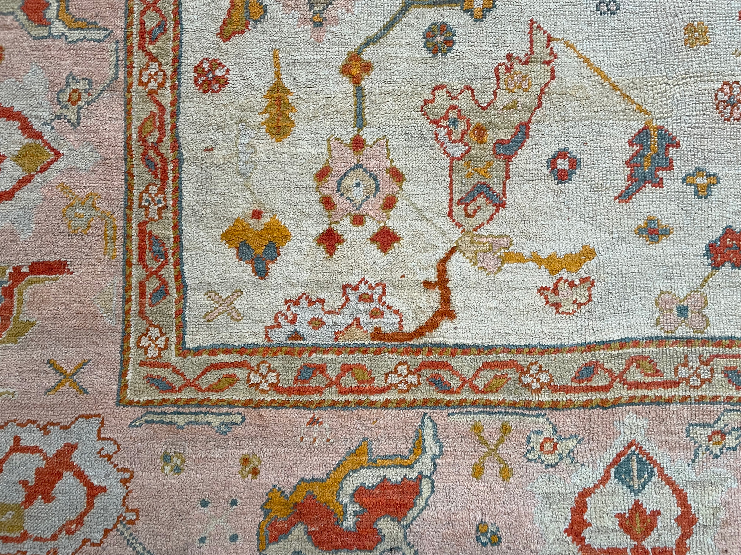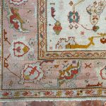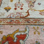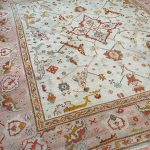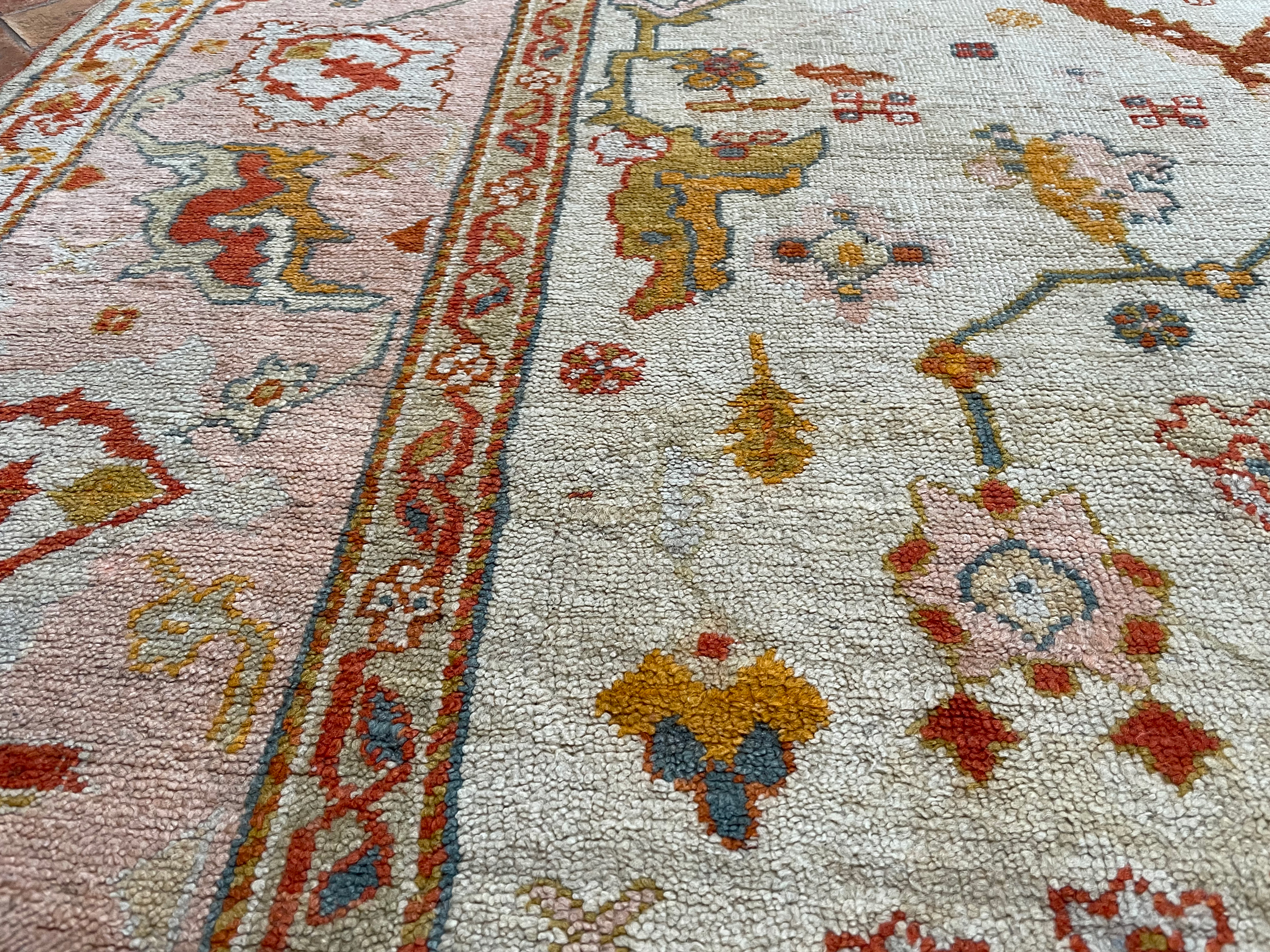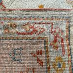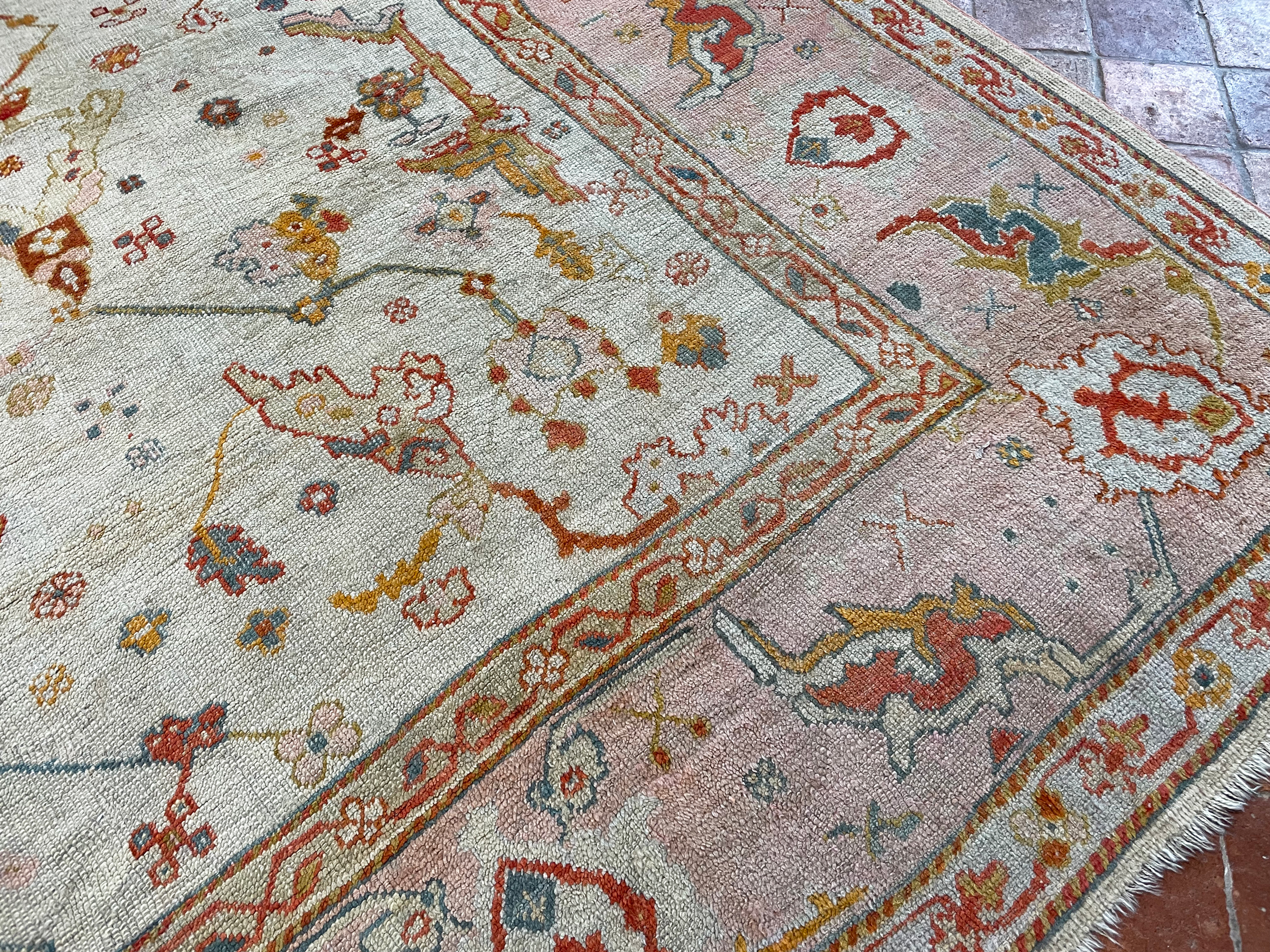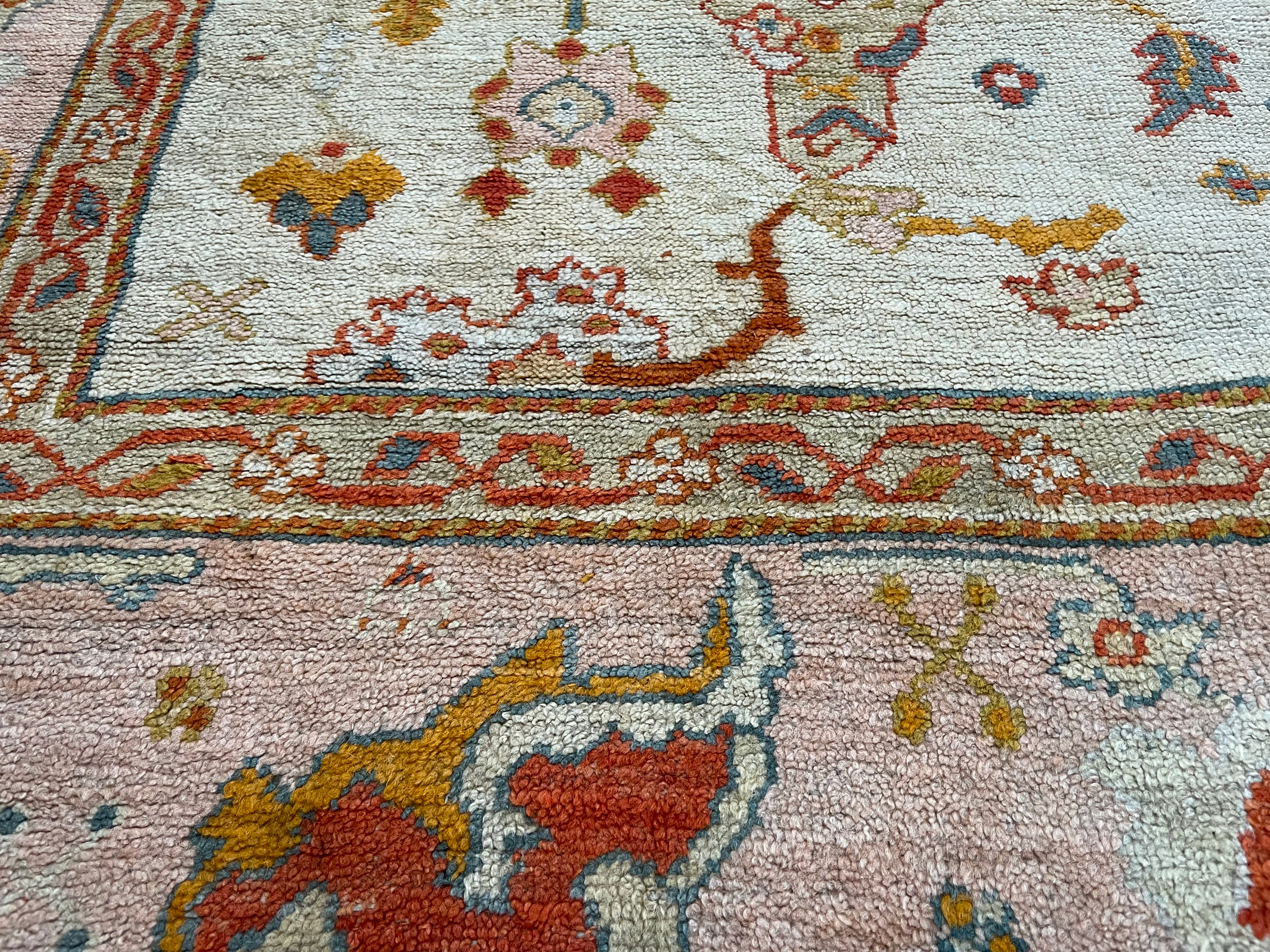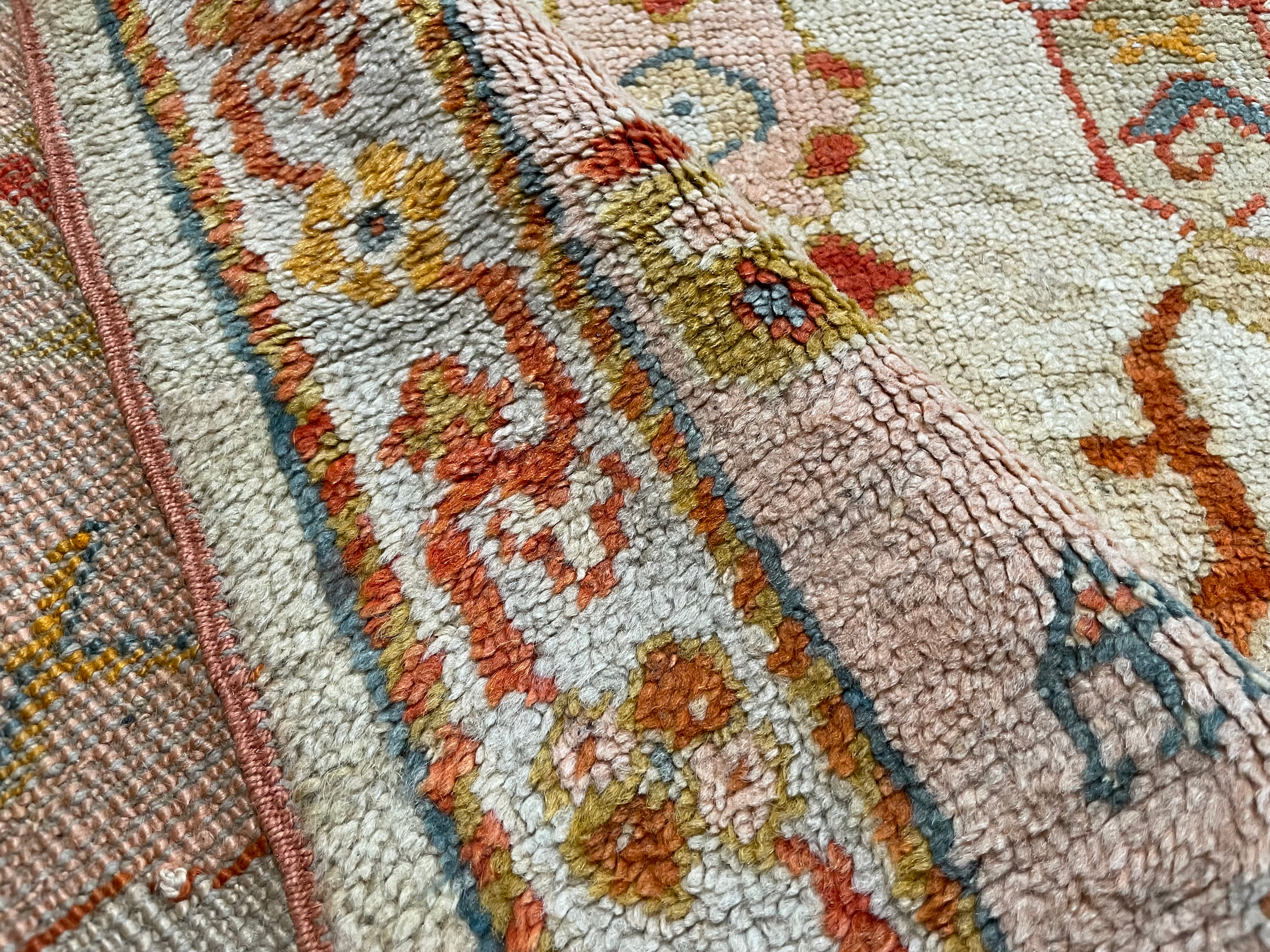 Often younger Ushaks or Oushaks will be rich red in colour and use bolder geometric designs. This Anatolian carpet has an almost contemporary feel to it and would work in a modern space as well as traditional. We clean every carpet before offering it for sale and make sure the ends and fringes are secured. A decorative subtle piece ideal for a soft scheme.