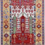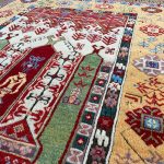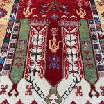 Konya carpets are named for the region in which they were made. Renamed from the Greek “Iconium” when the Seljuk Sultans of Rum made it their capital, Konya is one of the largest, oldest and continuously occupied cities in Asia Minor. When Polo wrote of the Konyas, he had probably seen them in manufactories that were attached to the Seljuk courts. In the early 20th century, large carpets were found in the Alaadin Mosque in Konya; they are now housed in the Museum of Turkish and Islamic Arts in Istanbul. Scholars and collectors alike, primarily for their bold tribal designs and magnificent color combinations not to mention their rarity, covet Konya rugs.