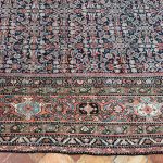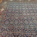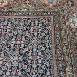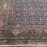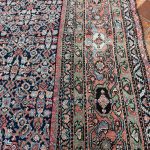 Fereghan or Farahan carpets are generally one of two types, the first being a full field decoration of floral motifs based on Persian designs, most commonly with the geometric ‘Herati’ design. The second has a full medallion, usually with a contrasting colour, the edge of which is surrounded by a zig zag or jagged border. The dyes have mellowed beautifully due to the carpets age allowing it to be placed in a drawing room or dining room with ease.