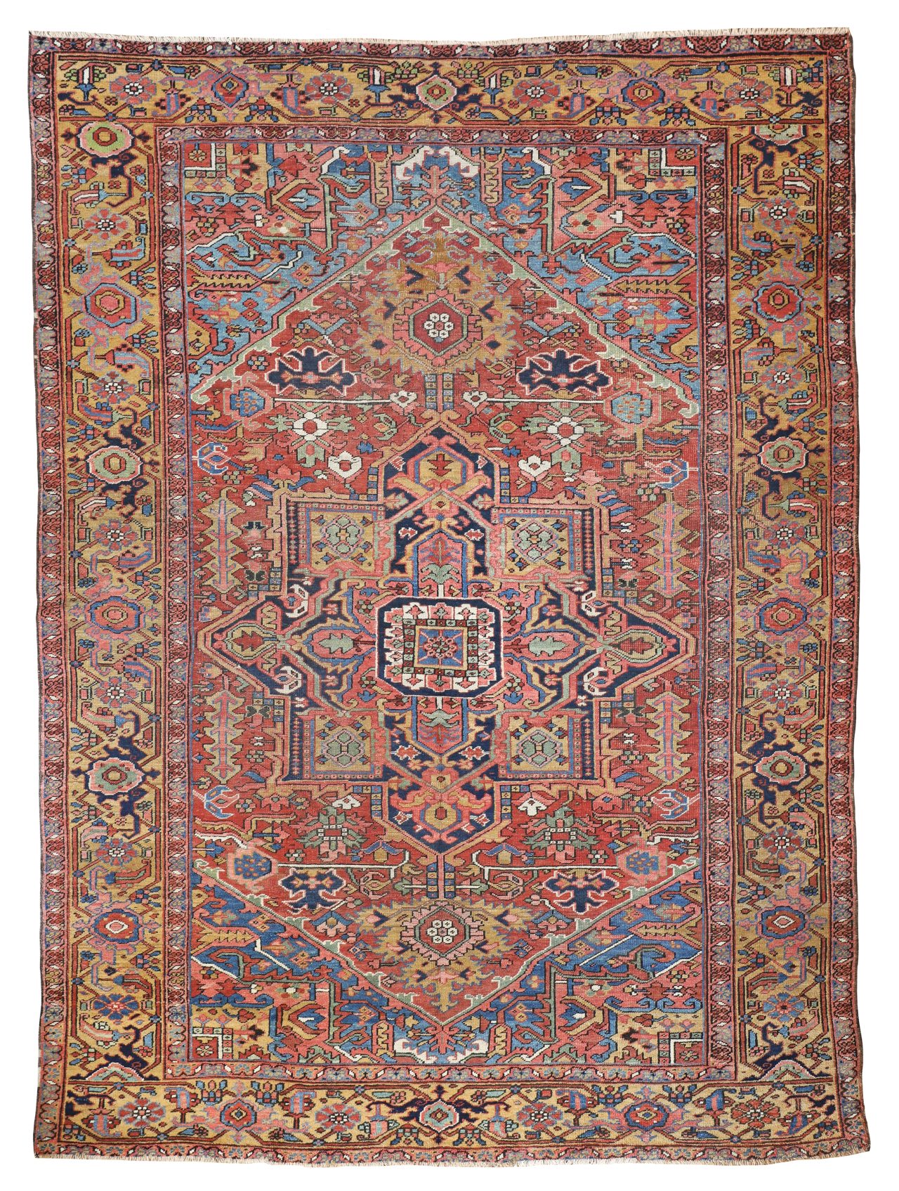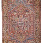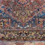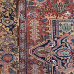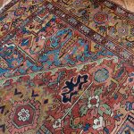 Heriz carpets have always been regarded as beautiful, tough objects of decoration, made in the north-west of Persia these handwoven works of art always have variations from one piece to another. Some draw influences from further north into the Caucasus and vivid colours like this particular carpet. This Heriz carpet is a decorative yet practical carpet which has been used for over 100 years and stood the test of time.