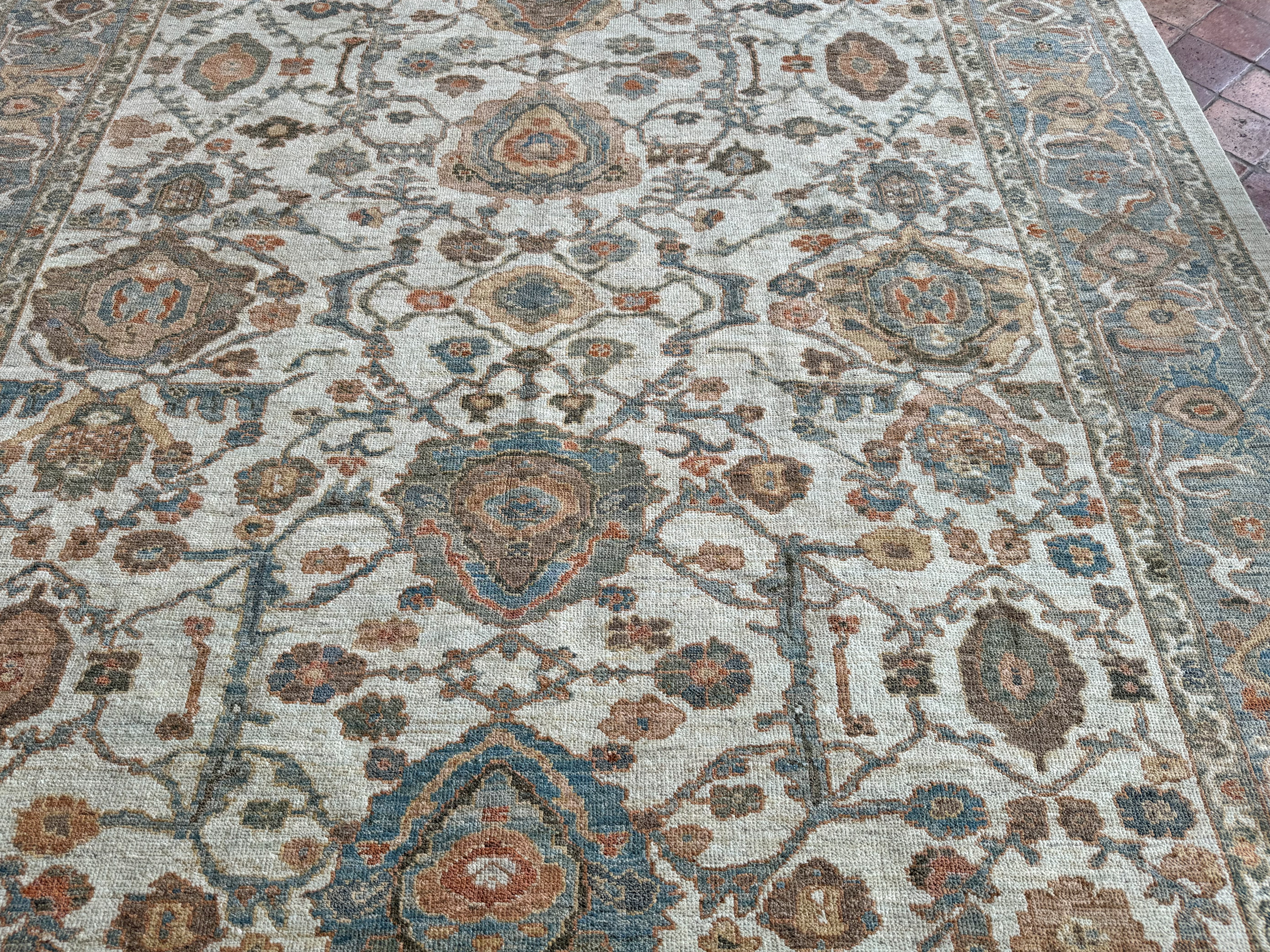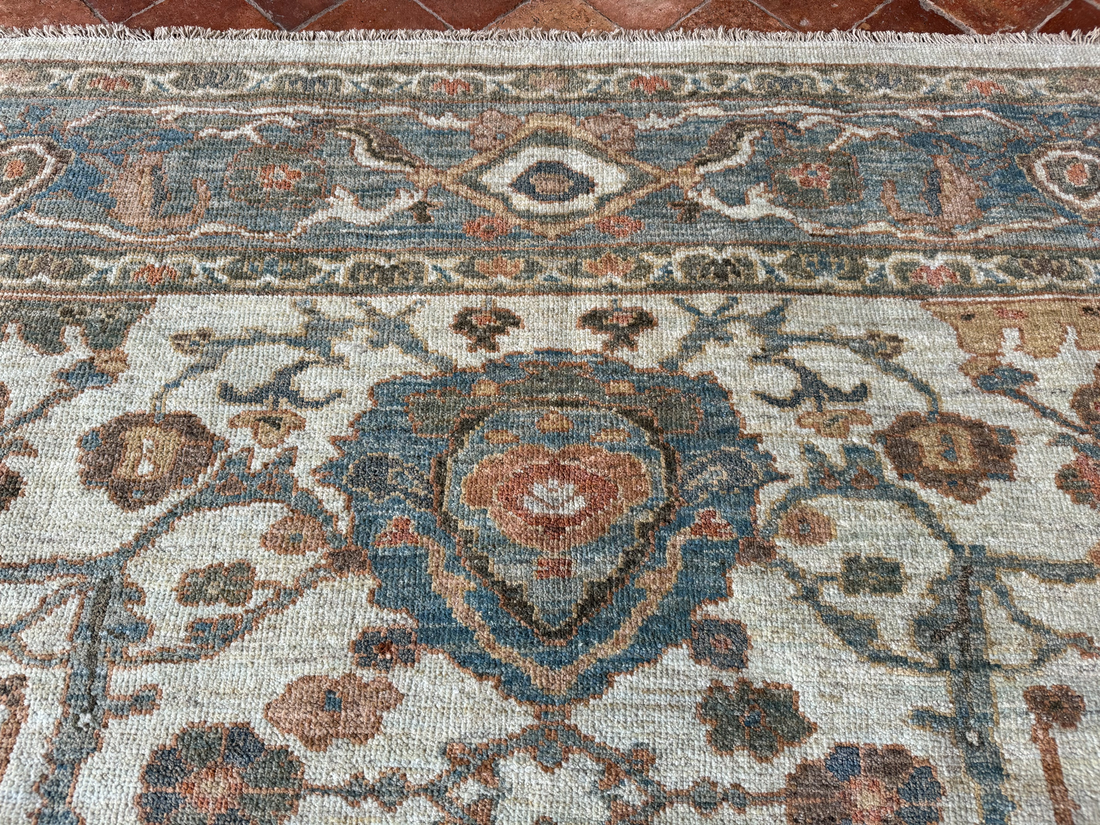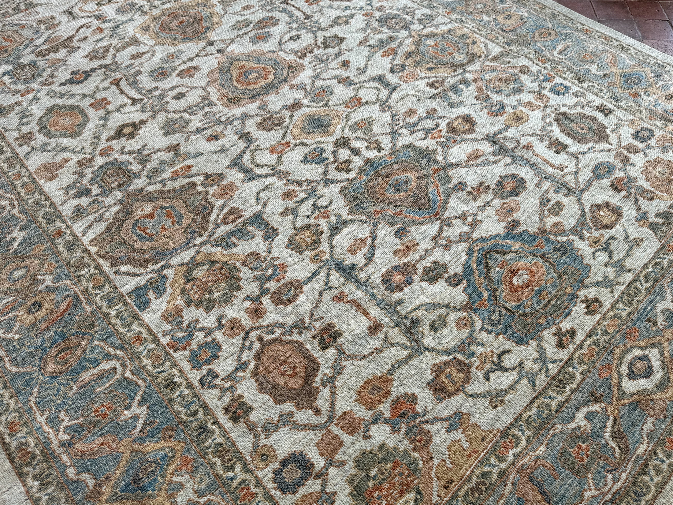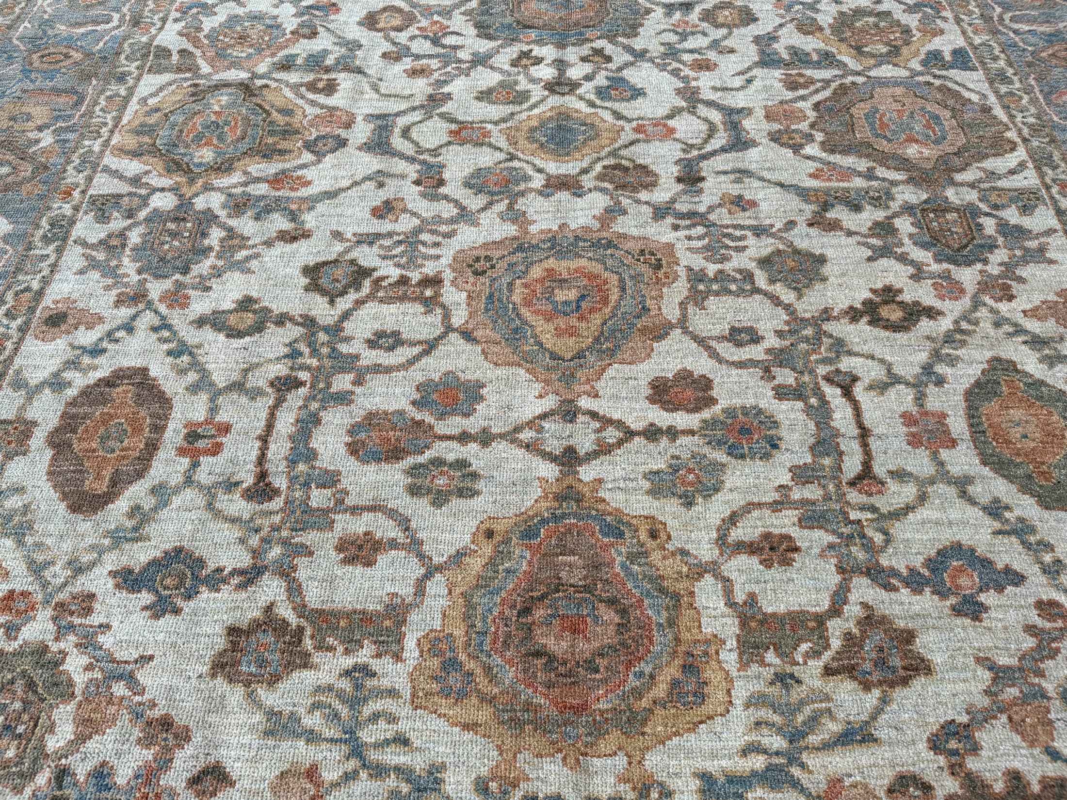 Using famous designs from antique Ziegler carpets, with large scale palmettes and flowing vines, they could be mistaken for antique carpets, as the colour palette and weave is executed so incredibly well.
