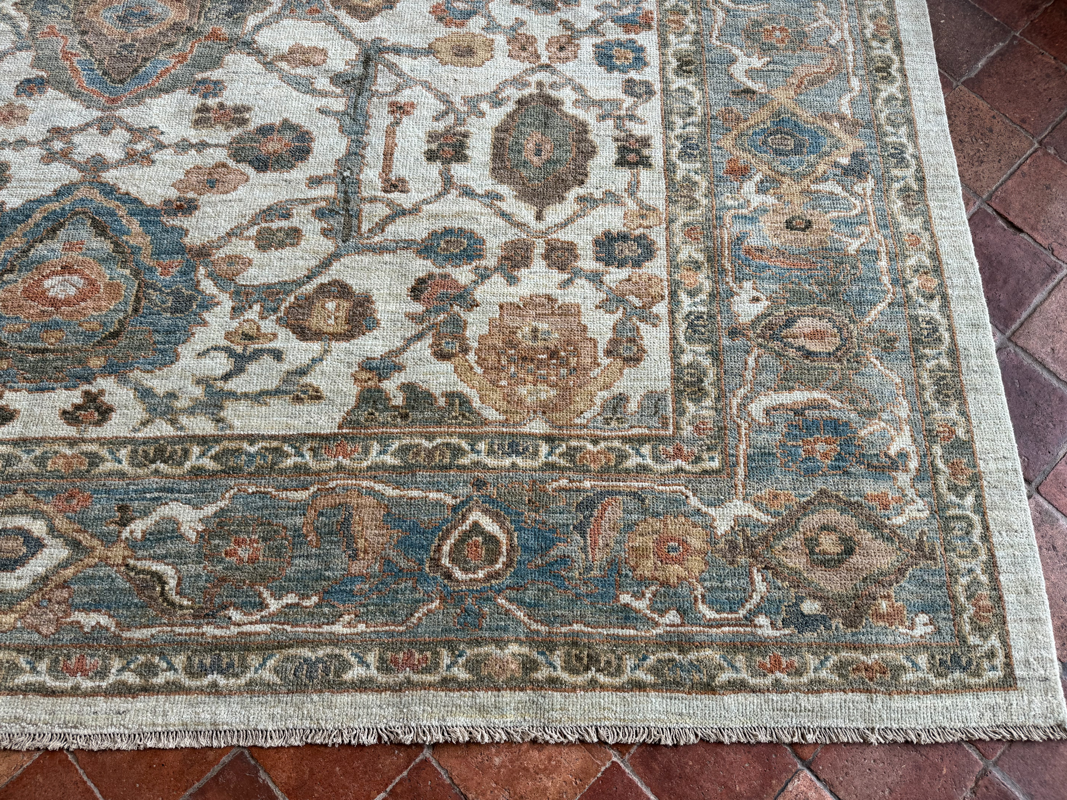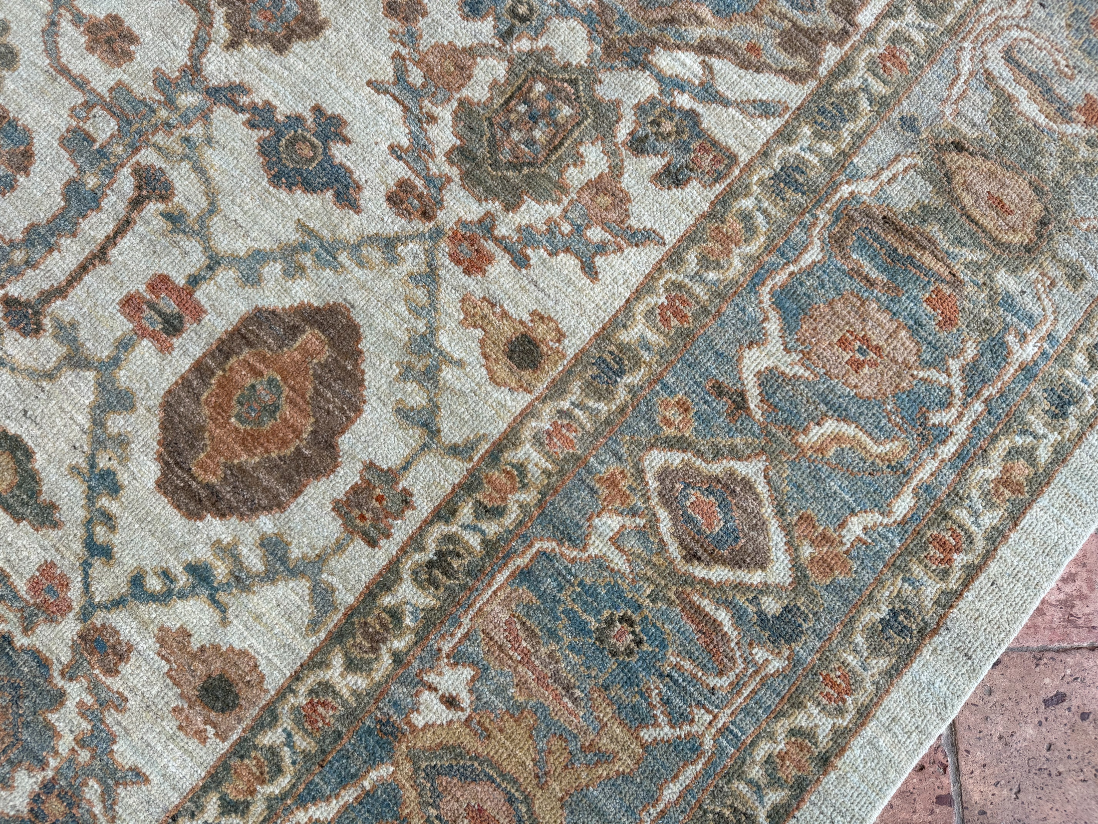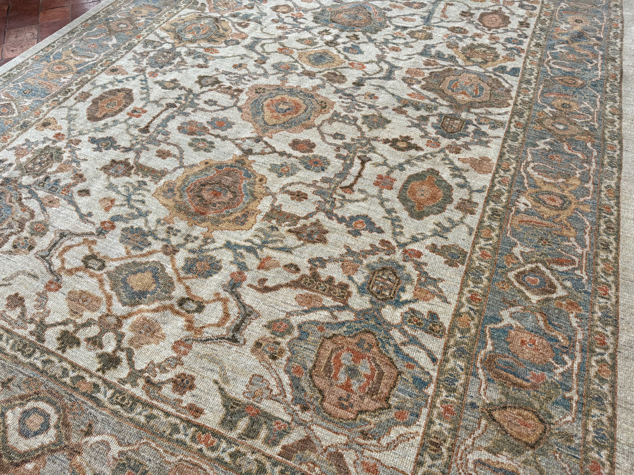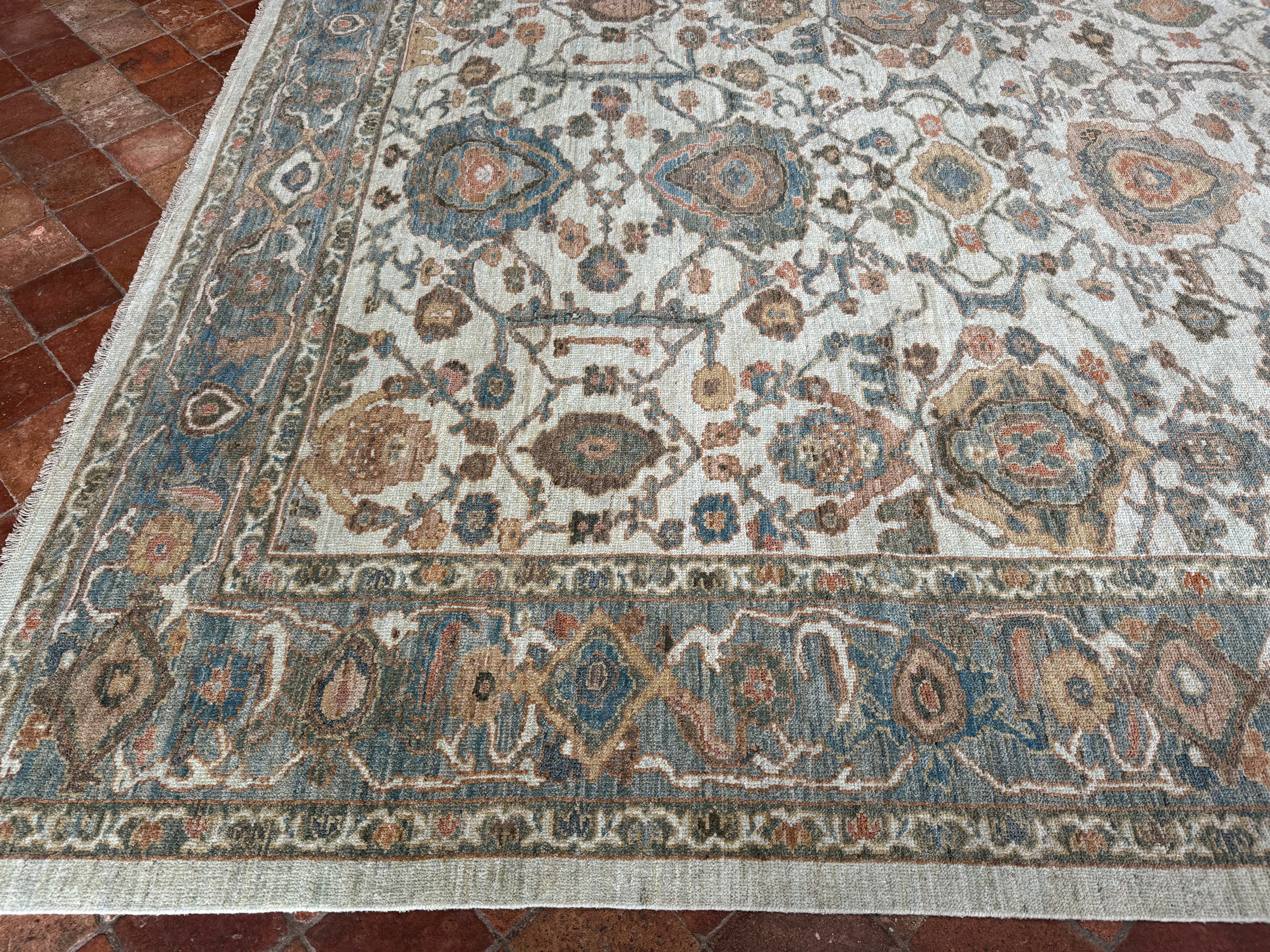 Using famous designs from antique Ziegler carpets, with large scale palmettes and flowing vines, they could be mistaken for antique carpets, as the colour palette and weave is executed so incredibly well.