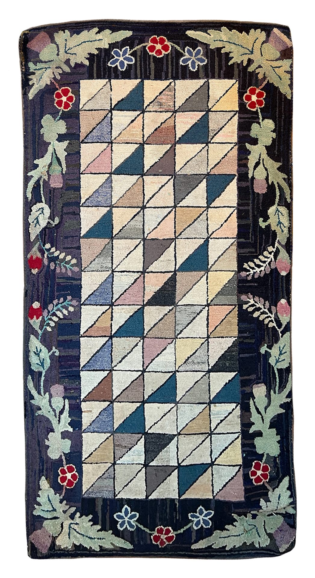 Purchase this exquisite American hooked rug via our website and we shall safely courier it to your home. Or please do request a home visit or book in a showroom visit to view the antique rug up close if you would prefer.