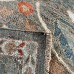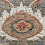 The scale of design on this contemporary Sultanabad runner is quite stunning, the large floral pattern is a direct copy of palmettes we would see on antique Ziegler carpets. A really beautiful and unique long runner that would enhance any corridor or hall. Hand-woven with all natural dyes and soft wool, using many variants of greys and pale blues for the background, which adds lots of depth to the palette. The off-whites, blues, muted terracottas and golds are lovely colours to use for the pattern, all natural dyes so very soft to the eye.
