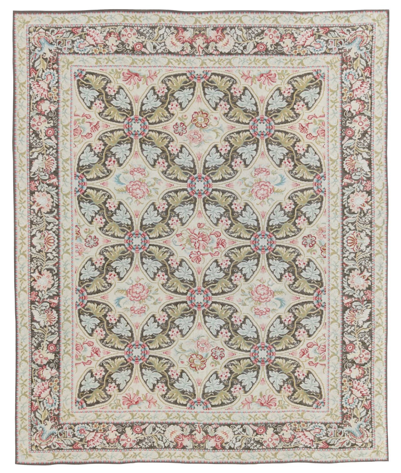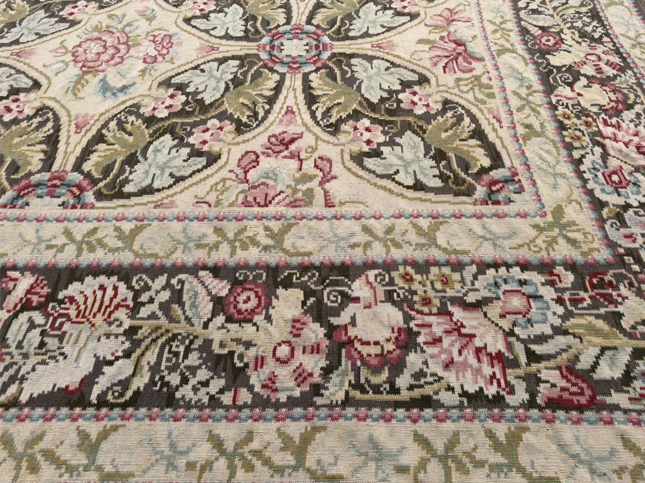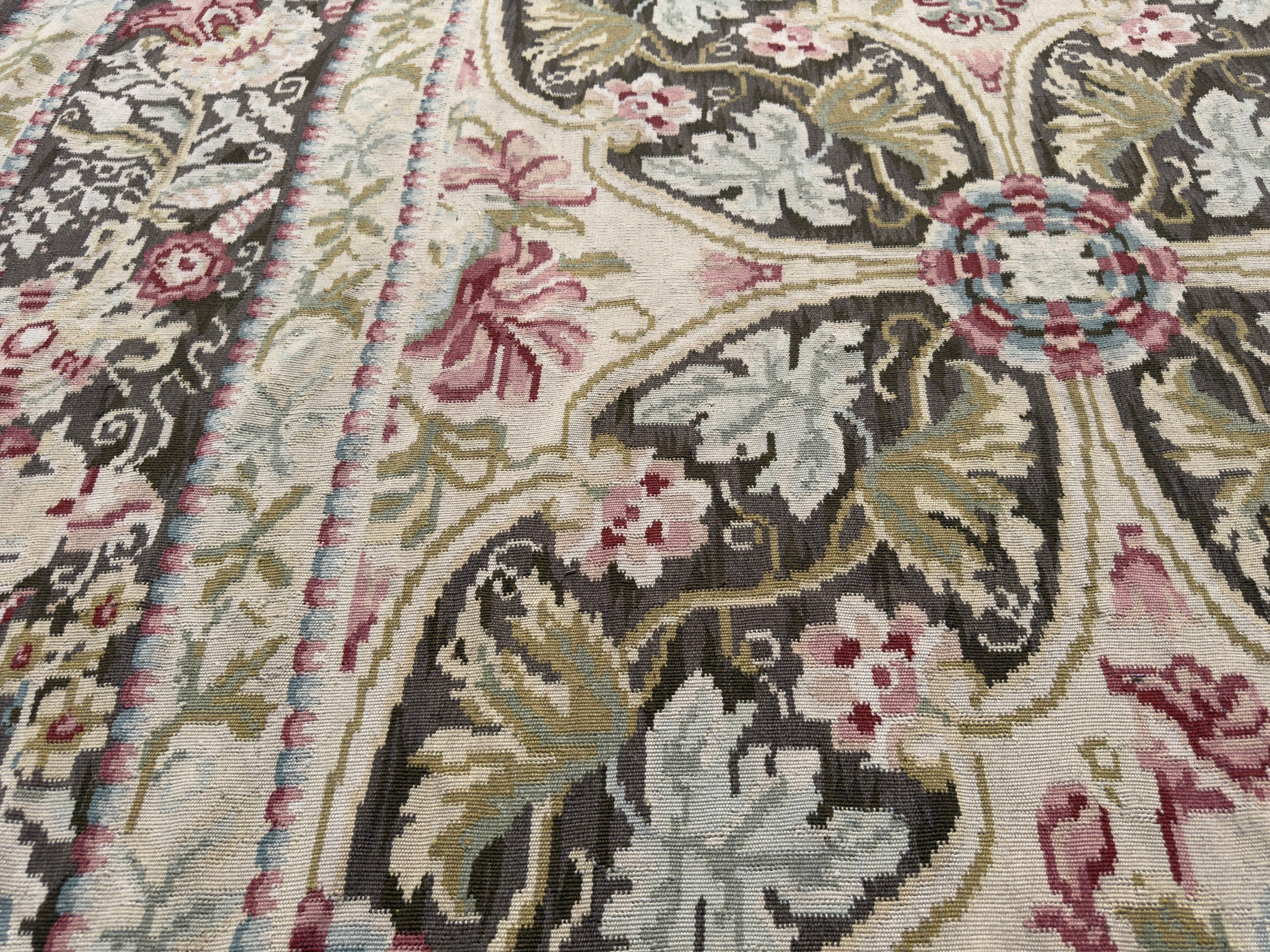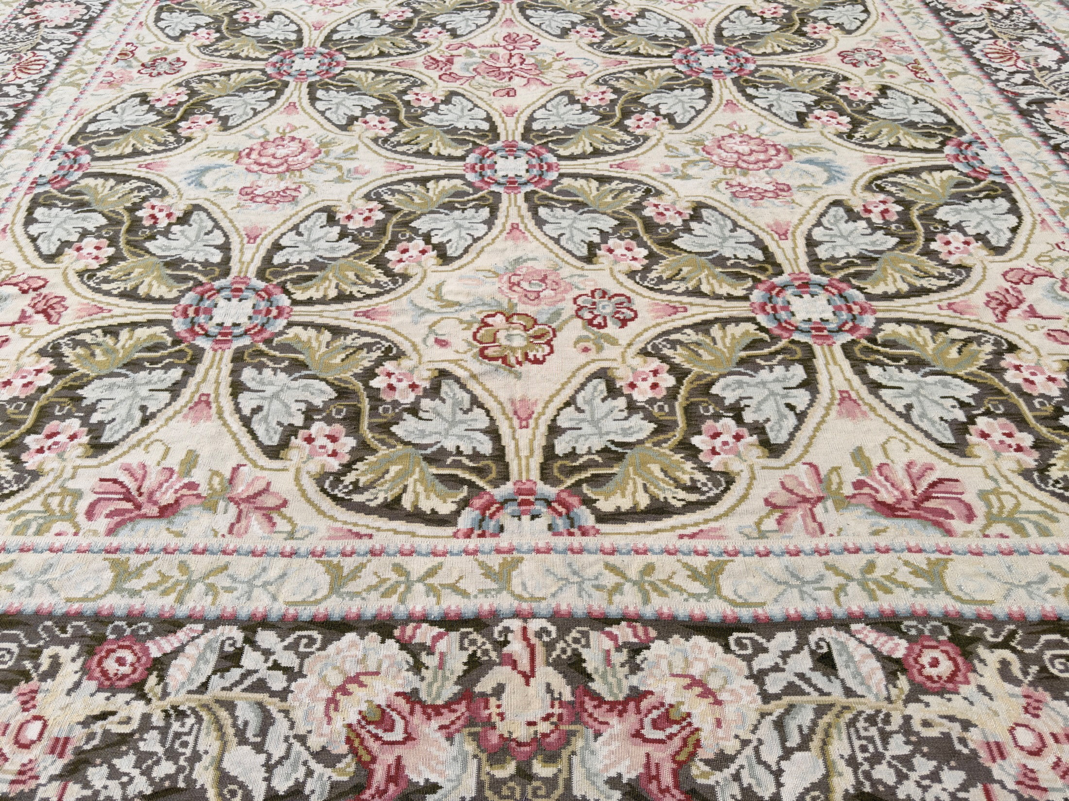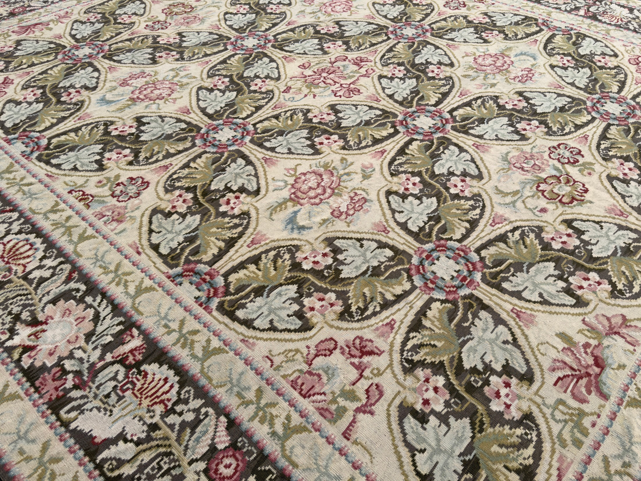 A contemporary Bessarabian kilim inspired by the traditional elements of antique kilims from the same name, this has been beautifully hand created using the best wool and natural dyes. The delicate floral sprays, with olive tones, taupes, and muted pinks and browns. Woven within the last 20 years this is a wonderful contemporary kilim, rare to find in this large size. View all the close up details and colours on al the additional images.