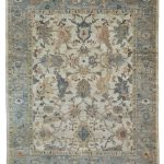 A lovely light ground contemporary Sultanabad carpet, with a wonderful open design, beautifully drawn, the minor border is a soft blue colour with exquisite little flowers and leaves, the large palmette design in the centre is really well spaced out too. Using the best natural dyes, these are hand-woven using the very best wool and soft colours. The natural dyes are faded and gentle, with sage green tones, dusky pinks, light blues, and hints of warmer reds in the small flowers in the border. This carpet could be mistaken for being an antique Ziegler over 100 years old, it has been beautifully hand-crafted by the best weavers.