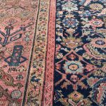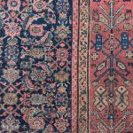Since the 18th Century, Farahan carpets from between Arak and Kashan have ranked among the best decorative carpets and rugs in Persia. The various mosaic designs of these rugs, of which there are around 20 variants compose of, the famous ‘Herati’ pattern, central motif designs, tree of life prayer designs and diamonds filled with rosettes. The border designs are ornamented with angular palmettes, leaves, rosettes. Colours tend to be light blue, purple/mauve tones, yellow or rare natural white ground.