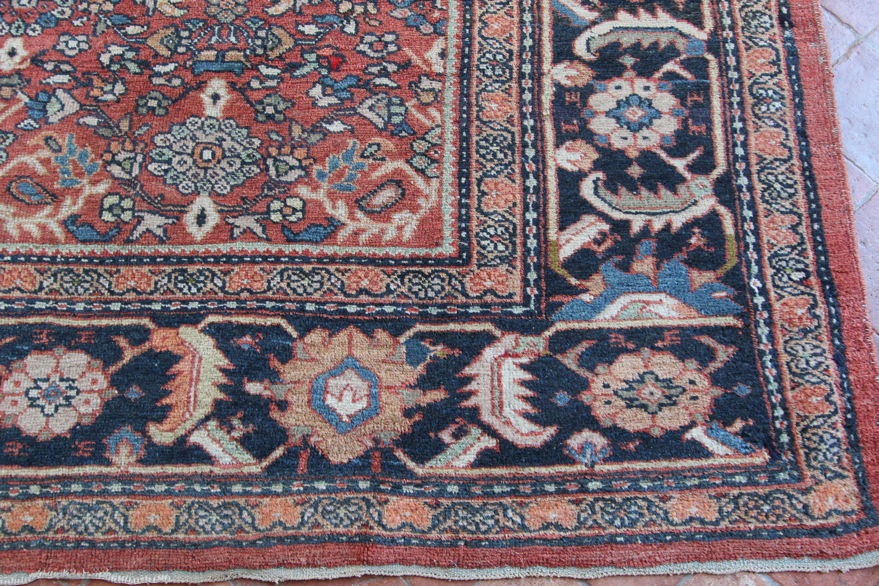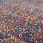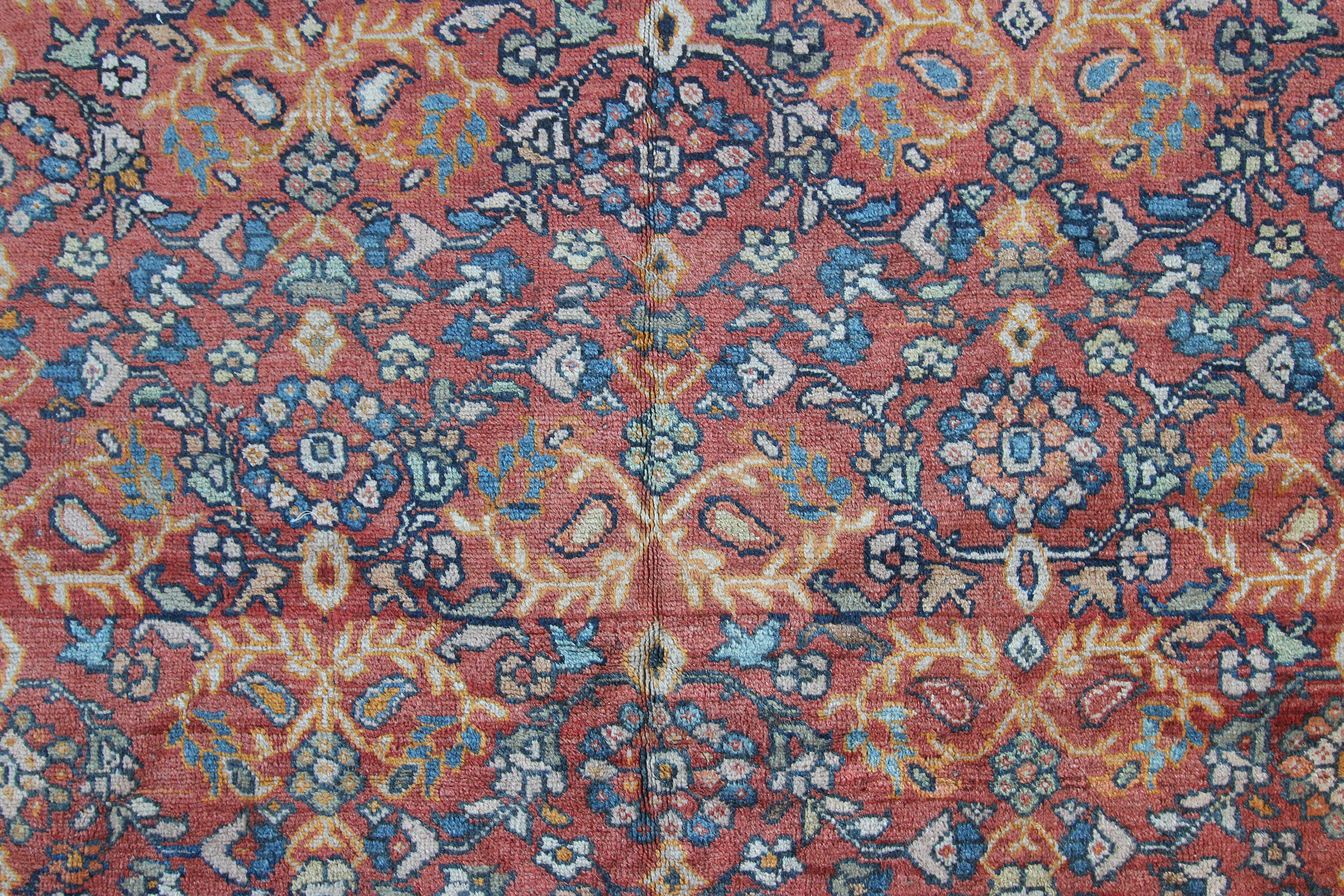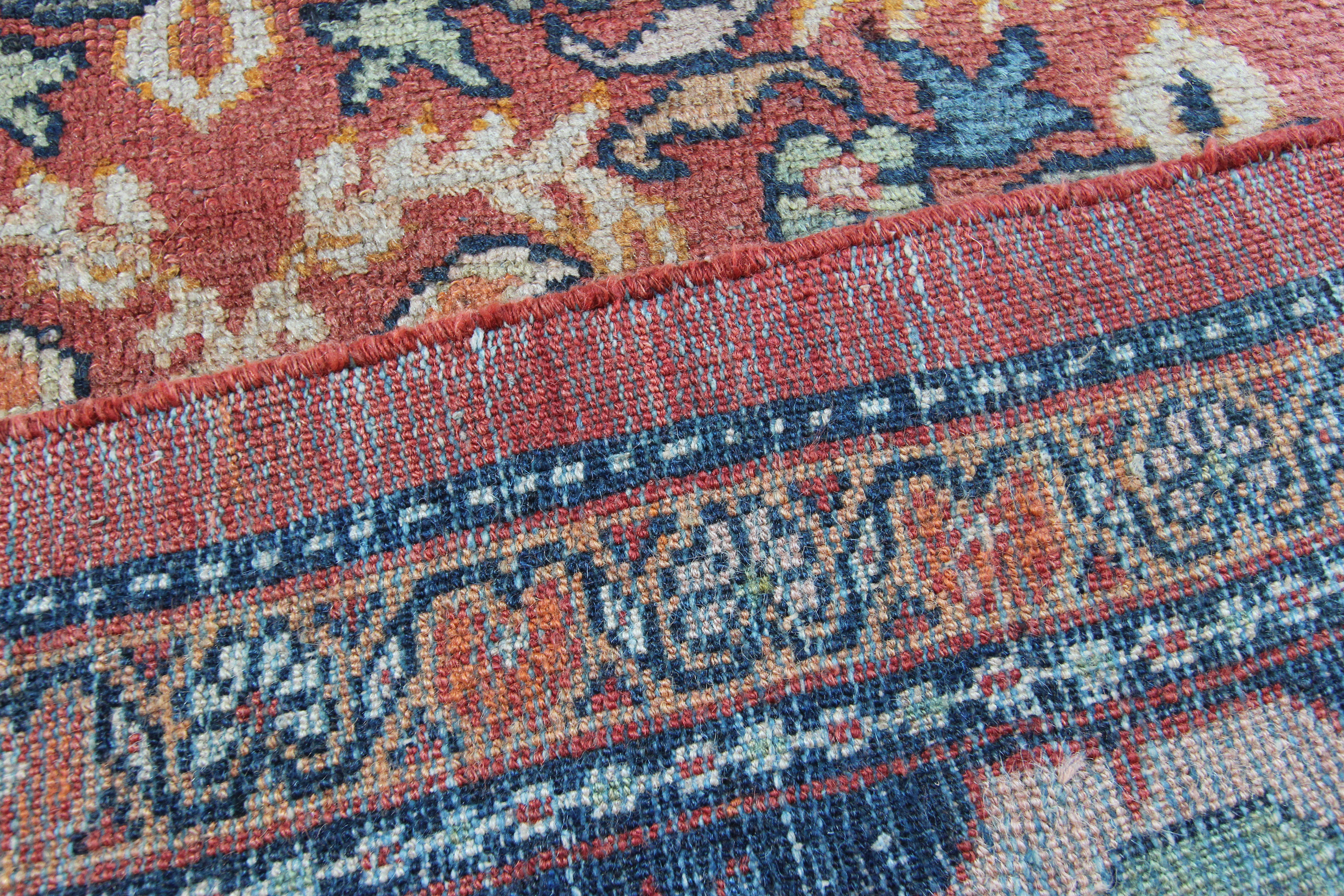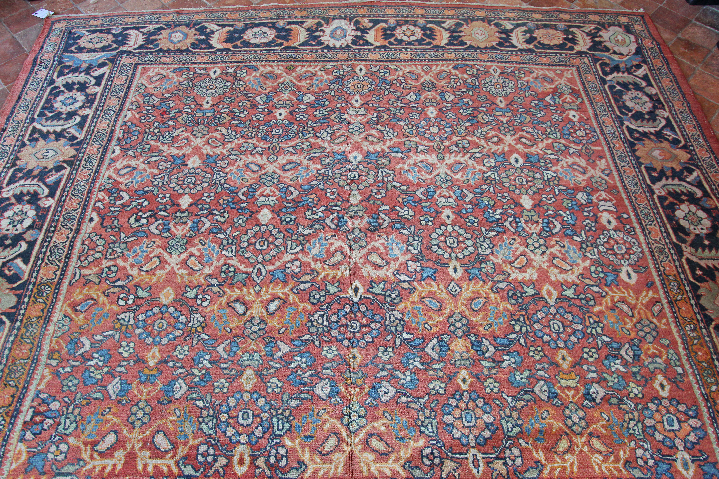 The condition is extremely good for a 100 year old carpet with no major wear or damage, Mahal carpets use soft wool and are generally very durable. The fringes are original too. Please request a home visit to select a convenient day and time for you to view this antique Mahal carpet at home. We love to travel all over the UK showing carpets in situ, helping you choose the right carpet for your home.