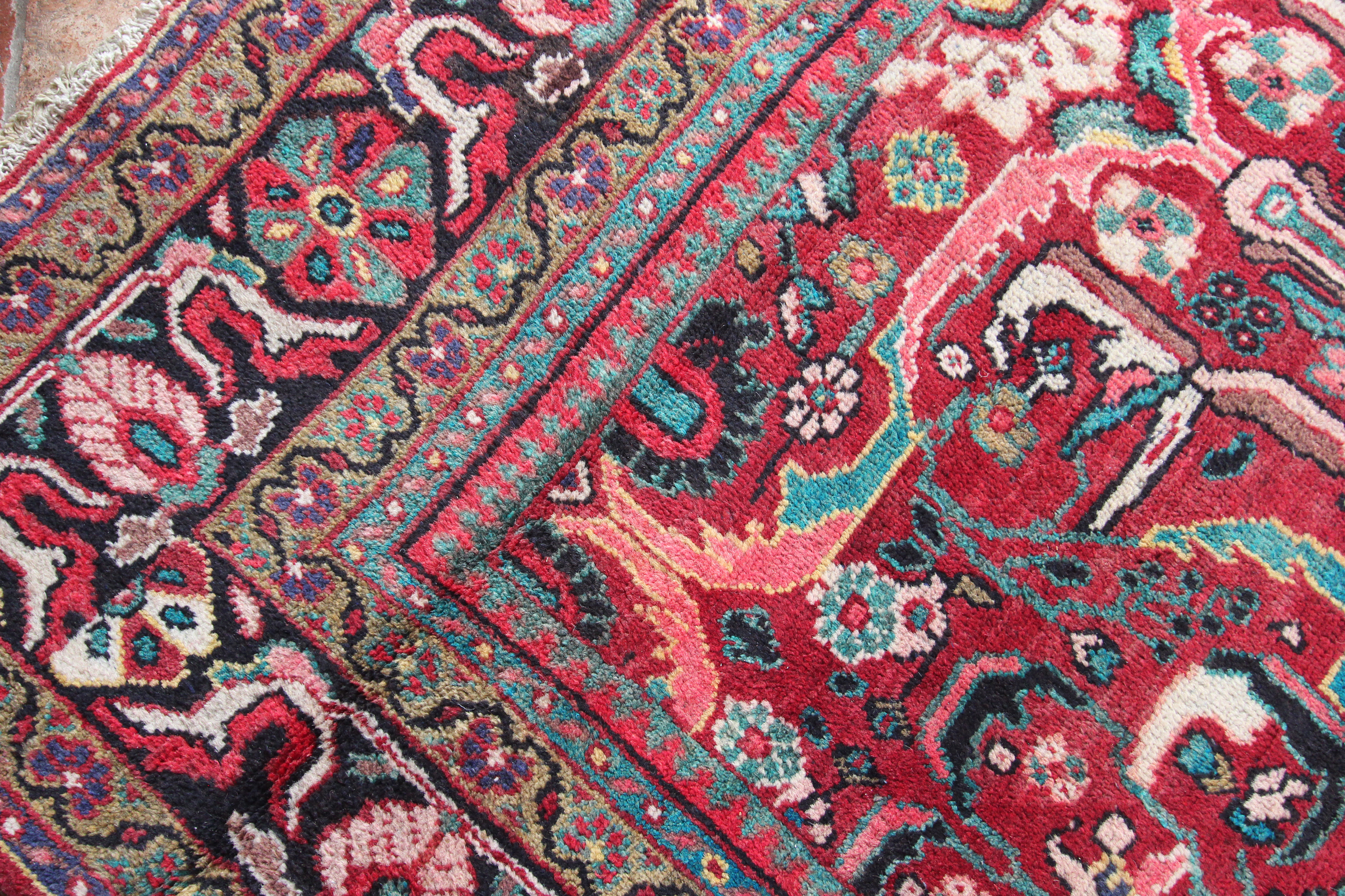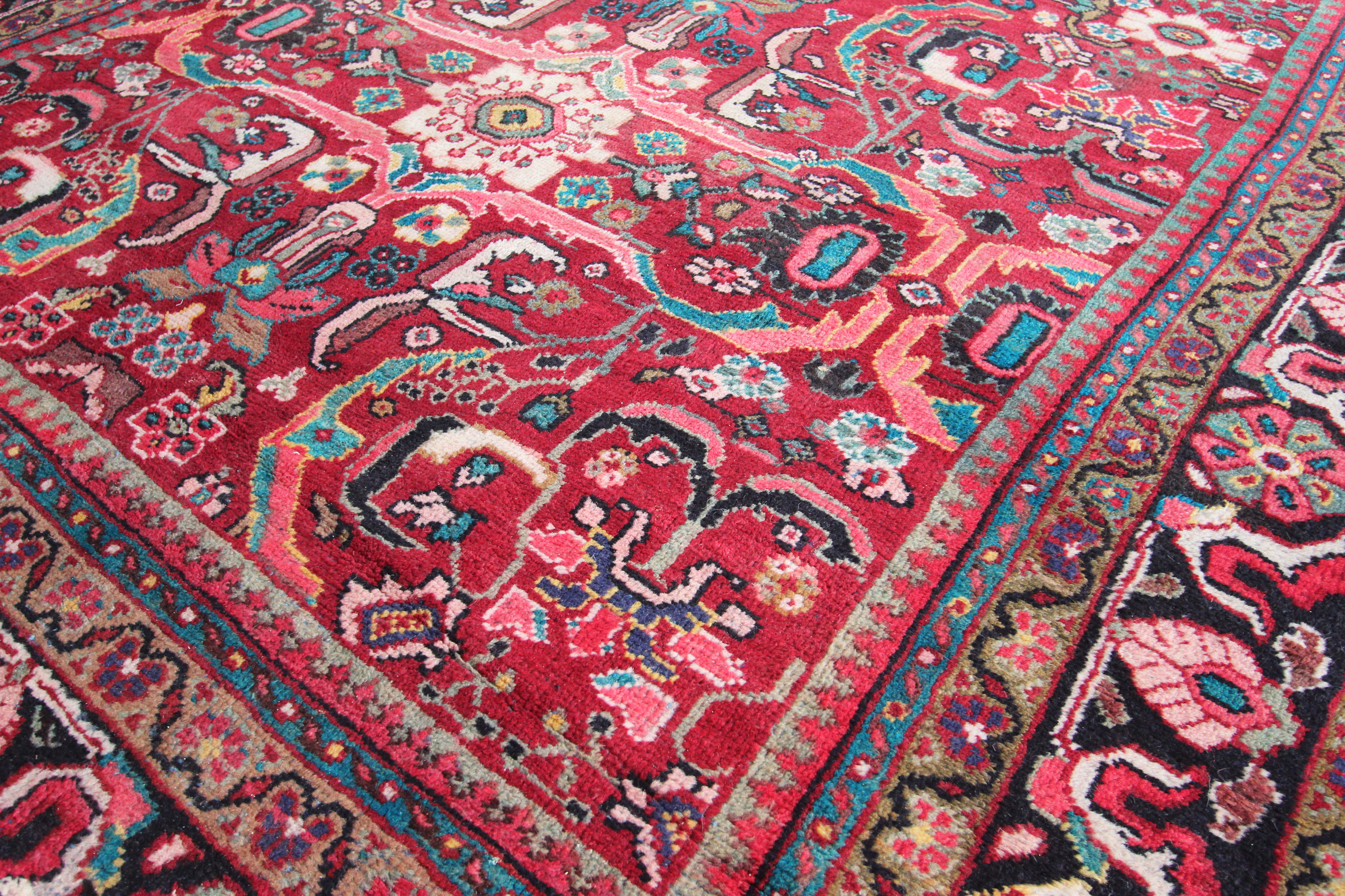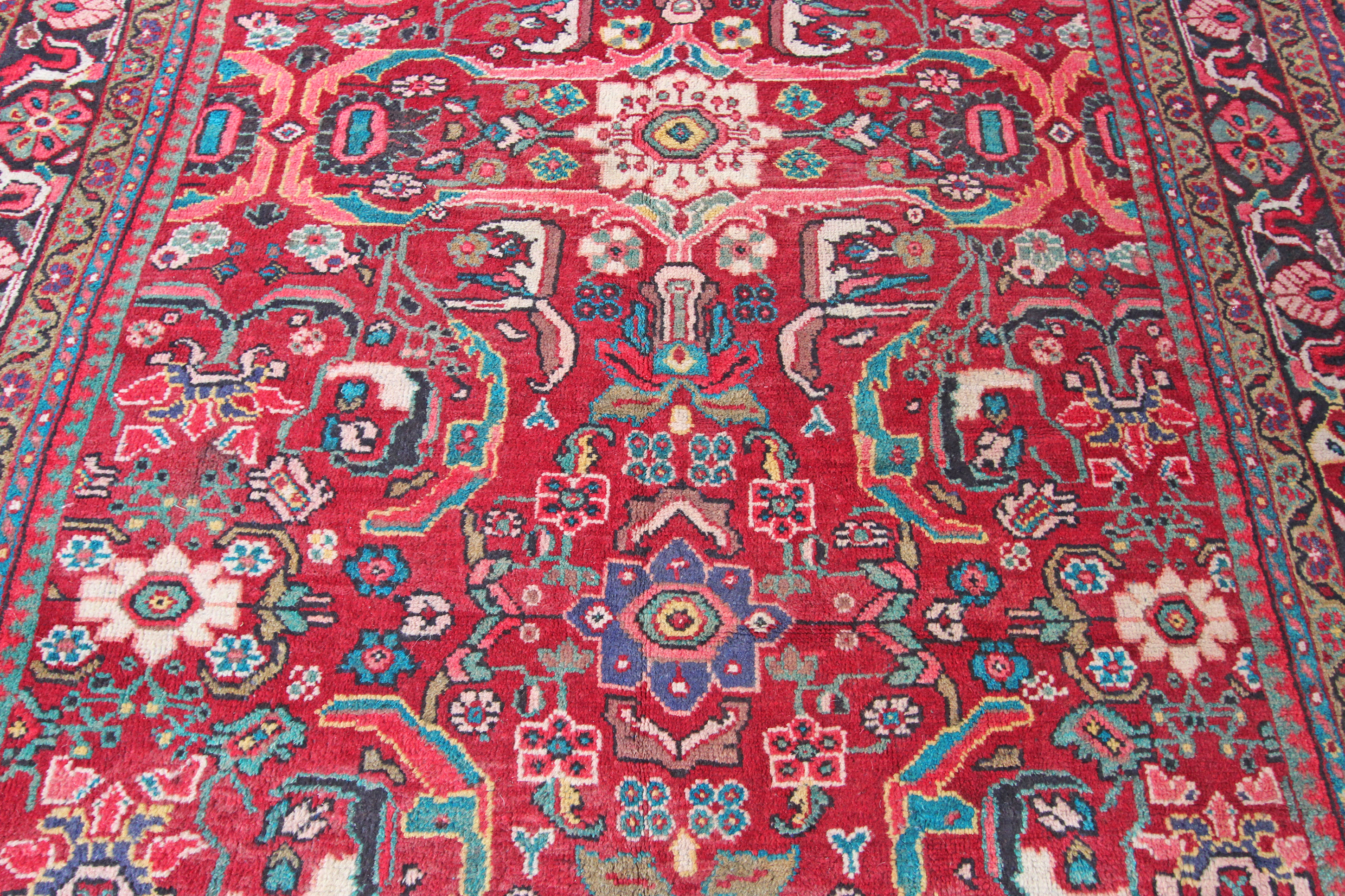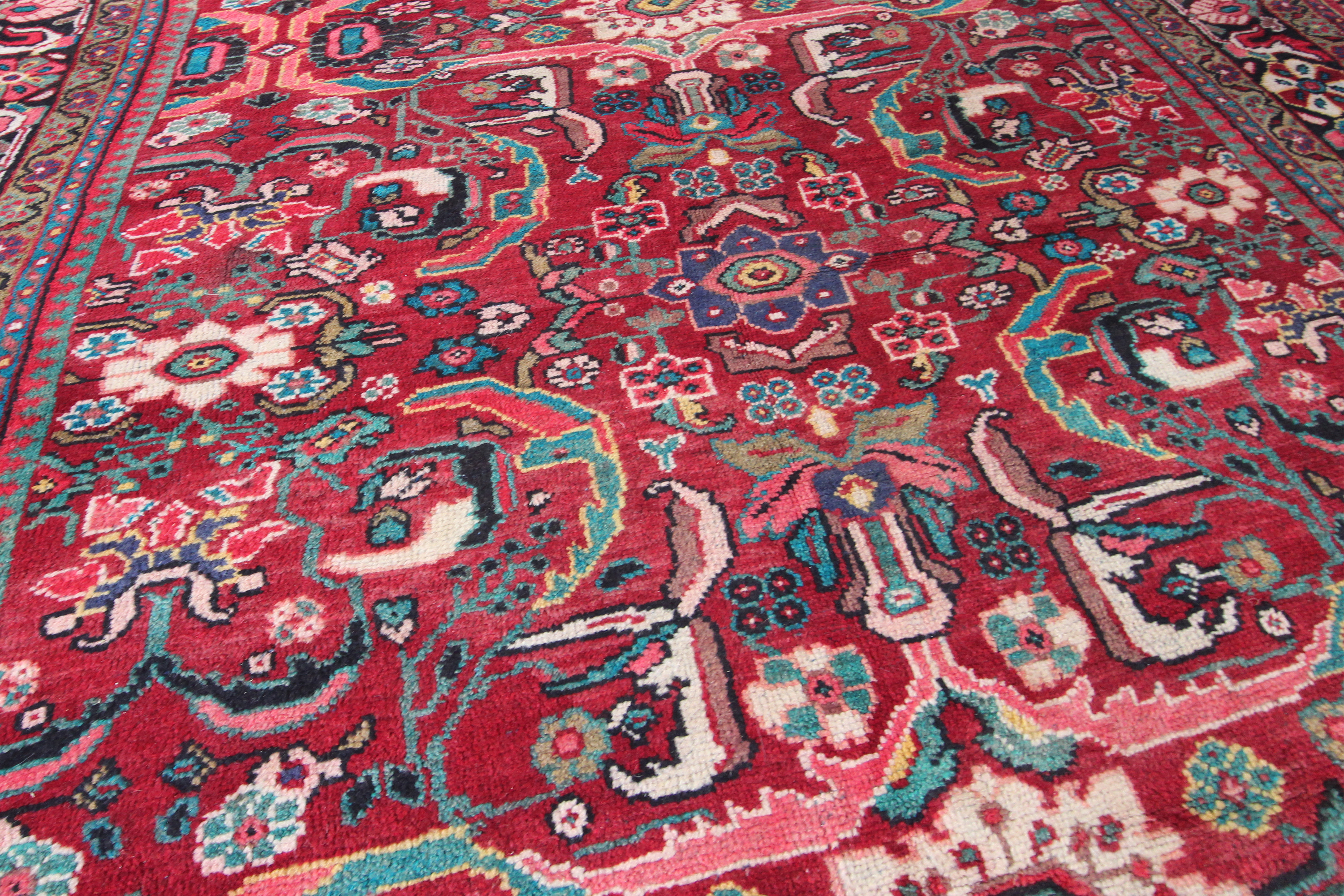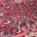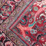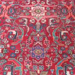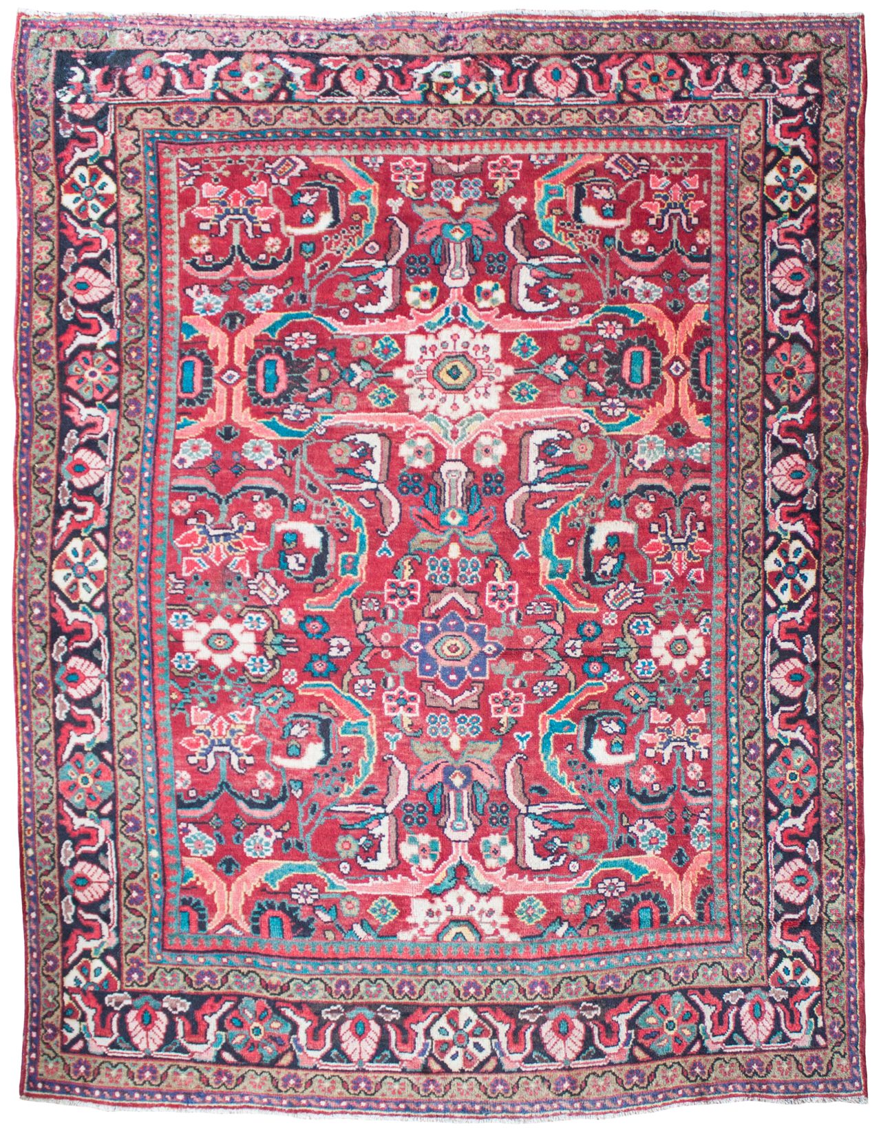 Antique Mahal’s or Sultanabad carpets are generally woven with all over patterns consisting of floral designs and soft tones.  Their neighbours in the north of Persia, Heriz were always more geometric in their style – and more often were woven with central motifs.  The all over design Heriz carpets are increasingly hard to find in good condition and with age.