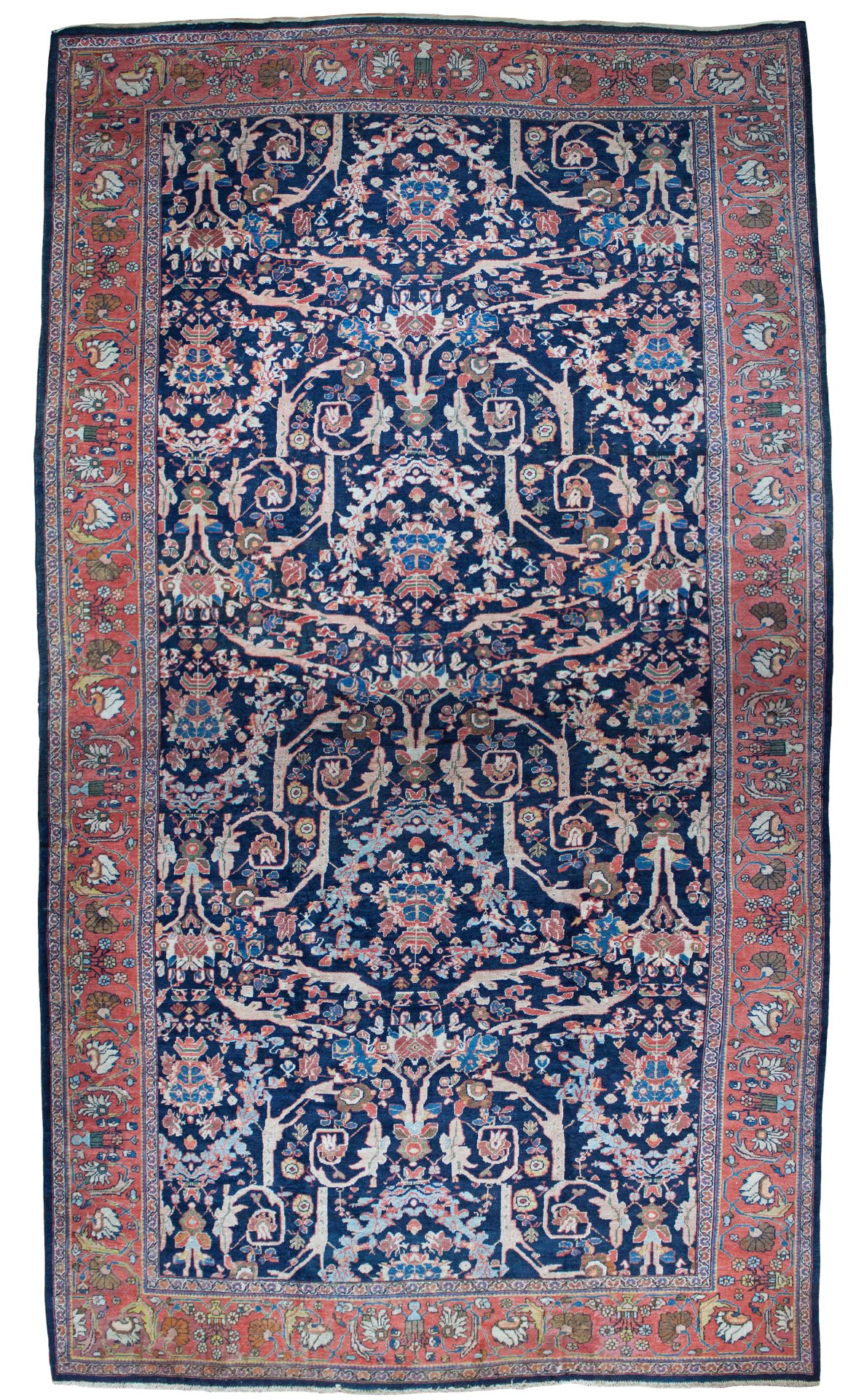 The design is famous due to the Persian prime minister during the late 19th Century commissioned artisans to create a scrolling spiralling version of the ‘Gol Farang’ (which is a foreign flower; inspired by French and English florals) pattern that was immensely popular at the time. As Ziegler & Co had inspired and created decorative floral carpets being woven in Sultanabad in the late 19th century other workshops locally followed suit and these designs were made in competition.