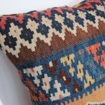 A wonderful antique Kilim cushion, double sided with this lovely geometric design. Great old natural antique colours and beautifully hand-stitched and filled with a feather cushion insert. All of our antique cushions have been hand-stitched using the best materials and inserts.