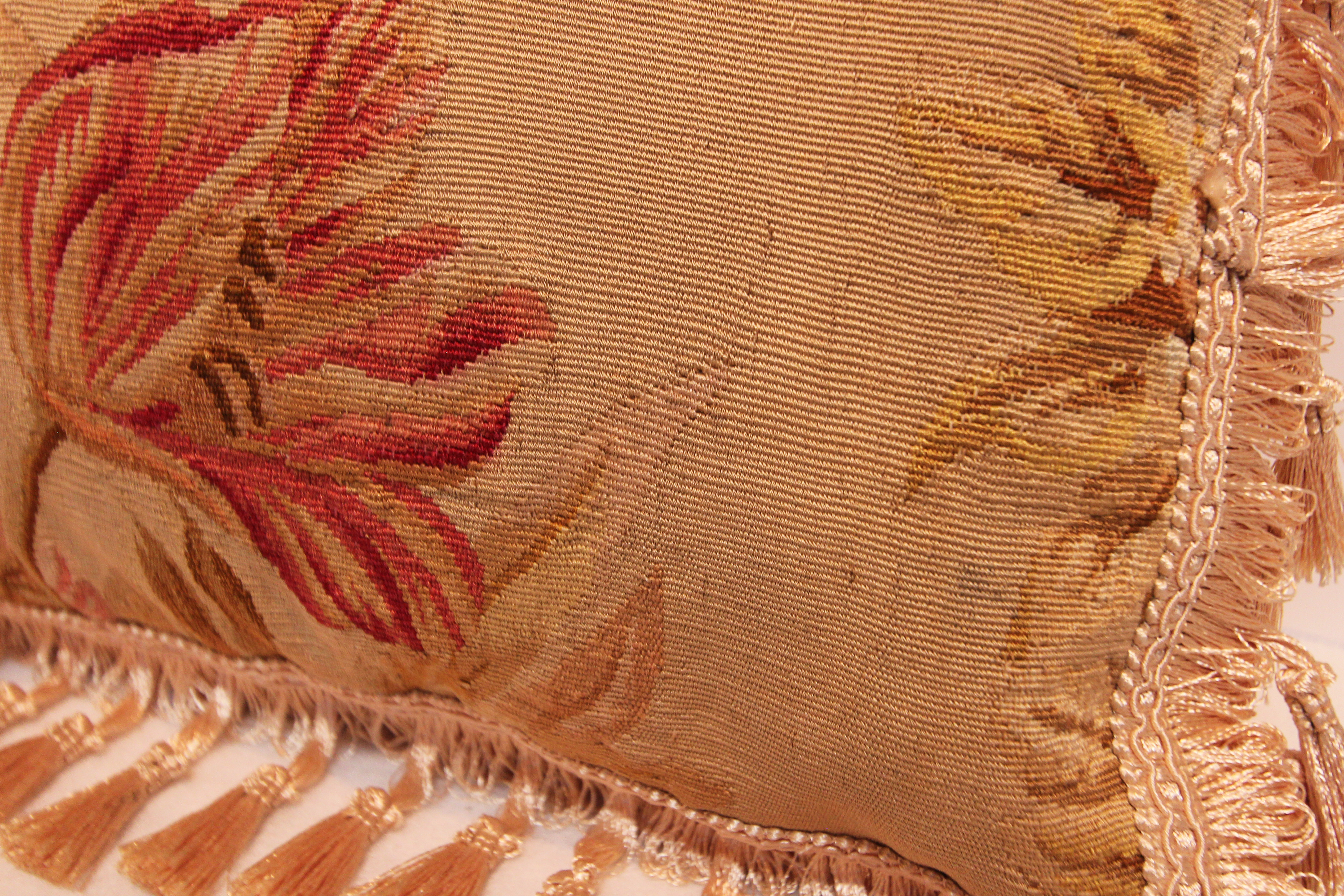 One exquisite Antique Aubusson cushion, Napoléon III period – beautifully handmade with a silk backing and all our Aubusson cushions are feather filled. The Aubusson faces of these cushions are original French tapestries from the mid 19th century which have been conserved where necessary and then made into these elegant decorative cushions.