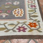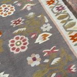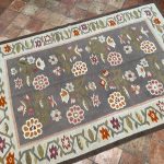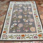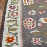 Carpets and kilims were woven with sheep wool on the vertical or horizontal looms; sometimes hemp or flax was used for the base. Woolen yarn was dyed with natural dyes from local plants and insects. A group of kilims with floral patterns were produced from central regions of Ukraine (Poltava, Kyiv, Chernihiv) Ornament consists of images of flowers, more or less stylized or branches with flowers arranged rhythmically or related to the overall pattern.
