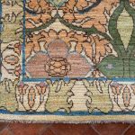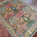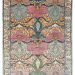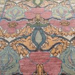 We have a brand new collection of Arts and Crafts design carpets fresh in stock. All hand-woven with the best soft natural wool and natural dyes. This beautiful piece uses varying pale blues, teals, greens, golden yellows with subtle pinks and cherry red tones. An all over abstract floral leaf design works so well on this Arts and Crafts contemporary rug. Taking design aspects from Voysey carpets and William Morris, these new rugs are really beautiful up close.