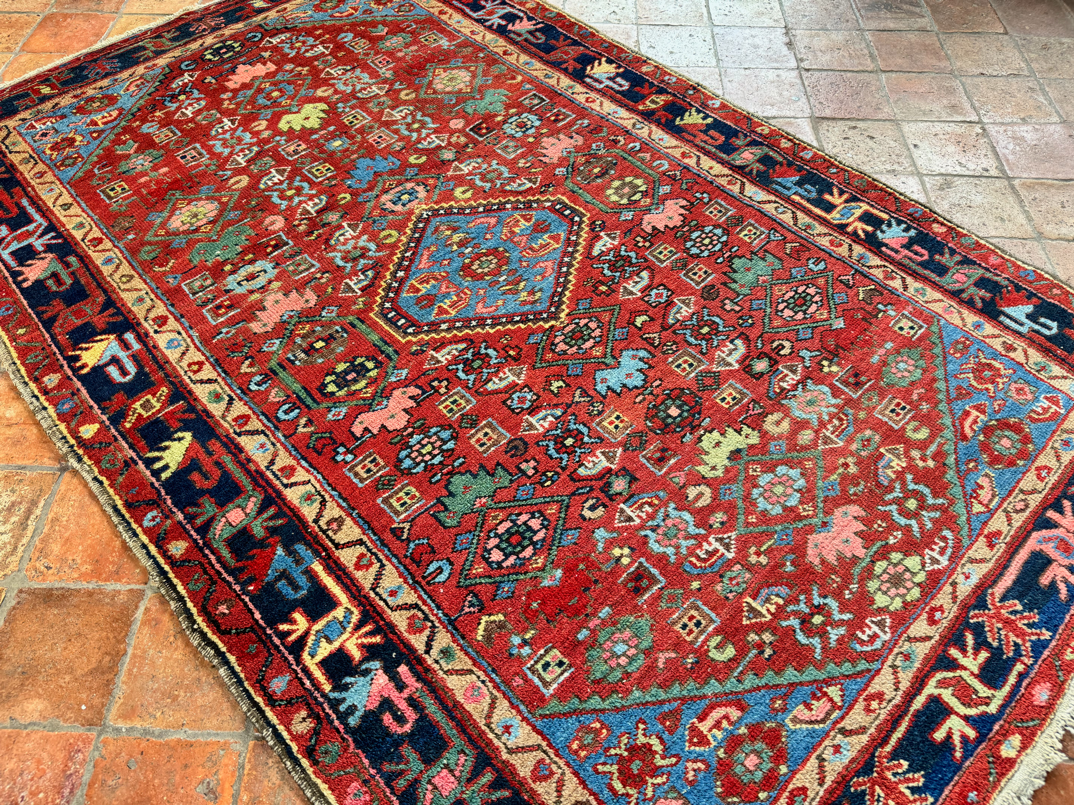 Heriz carpets and rugs are famous for their durability and are one of the toughest antique rugs due to the good quality wool that was used. They are still extremely popular today, whether in an 18th Century home with exposed beams or a modern home with contemporary furniture. Their warm colours and interesting designs make them an excellent compliment to any interior.